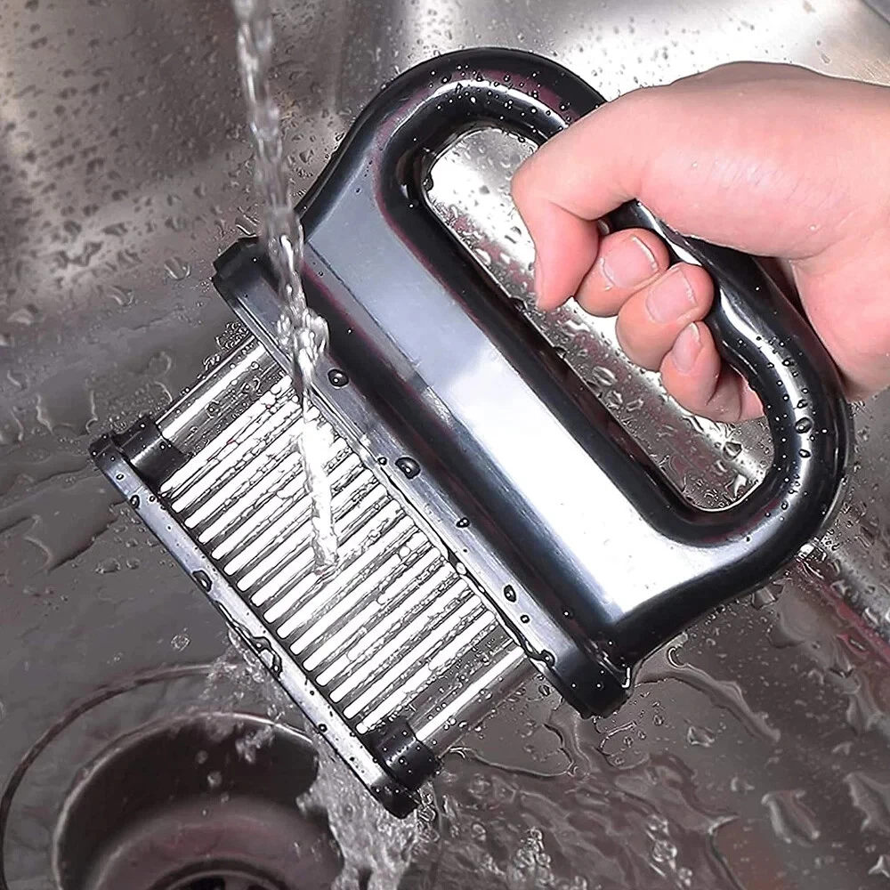 Say Goodbye to Tough Meat. Juicy, Tender and Yummy for Every Bite. Meat Tenderizer Makes Delicious Food for Your Family High Quality Sturdy and Durable Meat Tenderizer 1. The meat tenderizer tool is made of 48 stainless steel needles, which are hard, durable and free from corrosion and rust. 2. All its blades are made of 18/8 stainless steel, food-grade material, safe and reliable. 3. The blades are all very sharp, They maintain good meat tenderization even after prolonged use. Make the seasoning reach every part of the meat. Ergonomic Design 1. Ergonomic ABS handle, It is very convenient for you to use. 2. It's not bulky to hold, operates effortlessly, is easy to press, and automatically retracts quickly. 3. If you use the Meat Tenderizer, the food will be cooked as if you were dining in the best fine dining restaurant. Safe to Use and Easy to Clean 1. Hand wash or dishwasher safe after use. 2. Simply soak this meat tenderizer tool with blade in warm soapy water for a few minutes, then scrub it clean with a brush. 3 .After washing, leave it upright for a few minutes, Allow the water that has penetrated it to flow out naturally. Your Kitchen Helper Use it to tenderize a variety of meats, You can save up to 40% of time. Make food like a fine dining restaurant for your family or friends. Family and friends praise you for being a superior chef. Fine Packaging Comes in a beautiful package, perfect gift for your family or friends. 48 Stainless Steel Blades The blades are made of 304 (18/8) stainless steel and are extremely sharp and durable. Comfortable Grip Easy to maneuver and not bulky, it is also suitable for pretty ladies. Easy Cleaning Hand wash or dishwasher safe. The Perfect Party Helper Get together with family and friends. Enjoy a variety of meats that are tender, juicy and flavorful, Spend the best time together. Note Remove bones or thaw frozen meat before using this product to prevent the blade from breaking. Do not touch the blades with your hands when using this product. Do not give to children as the blades are sharp. Top About this item Questions Product information Reviews