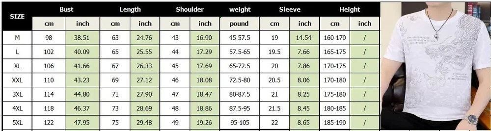 New Men Fashion Trend Dragon Print Trend Summer Short Sleeve Round Neck T-Shirt FAST & FREE DELIVERY | GREAT PRICE | SECURE SHOP PING | HIGH QUALITY Please pay attention! Please strictly follow our size chart carefully to select your correct size. Do not select directly according to your habits. please notice our size is chinese size, it is 2 size smaller than Europe or US size,so please check the size suggestion carefully before buying! Contact us & Feedback Customer satisfaction is very important to us. If you have any problem with your order, please contact us through eBay messages . We are here to assist you and resolve any issues that arise within 24 hours , so please give us a chance to do so prior to potentially posting any negative feedback. We'd like to be sure you are completely satisfied with your purchase. Payment Policy We give you a fast and secure PayPal Transaction. We also accept: VISA, MasterCard, American Express, Google Pay, Apple Pay, Discovery and many others. Highest safety and security standards are taken so you can feel safe. Shipping Policy All orders are typically processed and shipped within 3 business days. You will receive tracking information automatically uploaded once the item has been shipped. Return & Refund Policy If the item got defects or damaged we provide refund ( 100% moneyback guarantee service) If you have a problem with the item you have got please let us know within a week. It must be returned the item within 30 days after the delivery. Please feel free to contact us via eBay messages if you have any problem with the item without opening a case on the site. We contact you within 24 hours and do our best to help you out! Thank you for shopping with us!