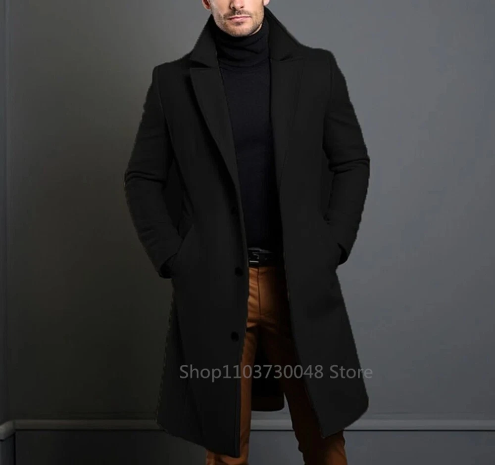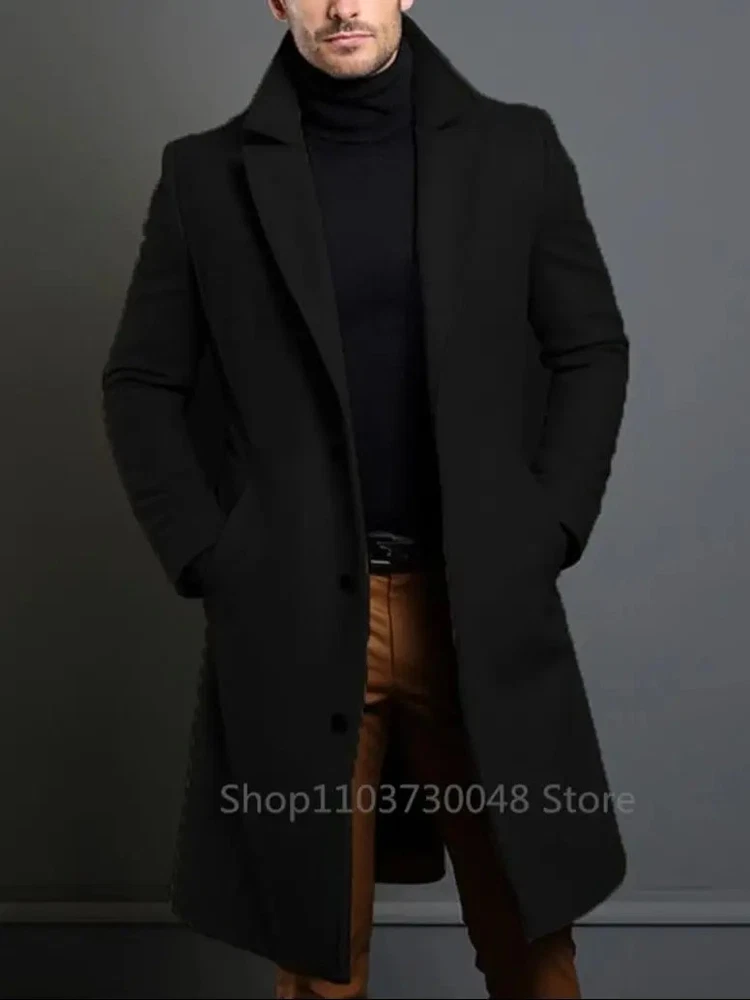Men's Trench Style Woolen Overcoat, Autumn Winter Windproof Thickened Warm Coat,