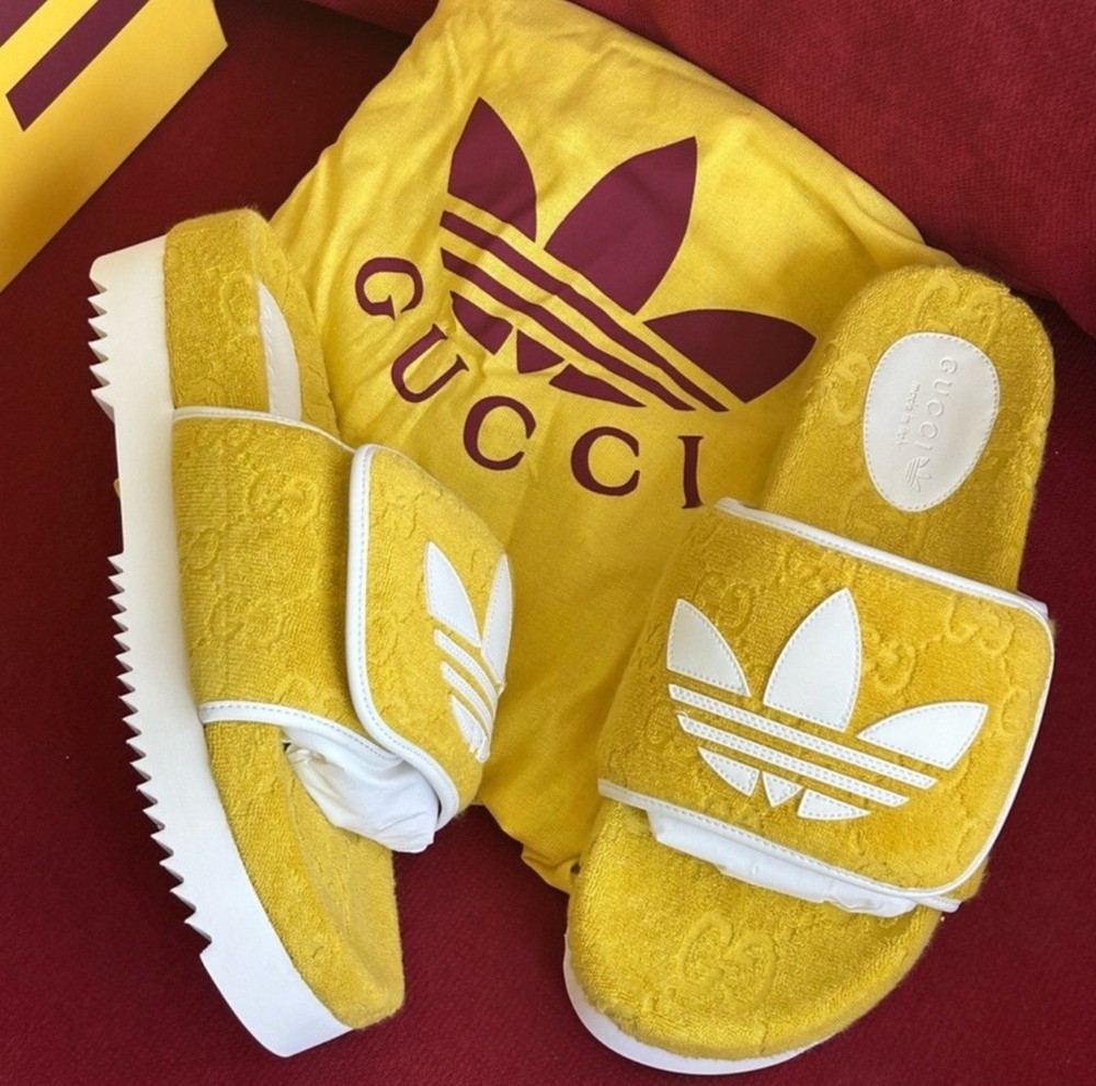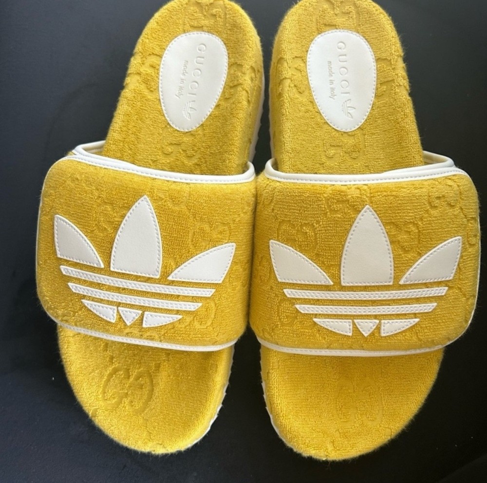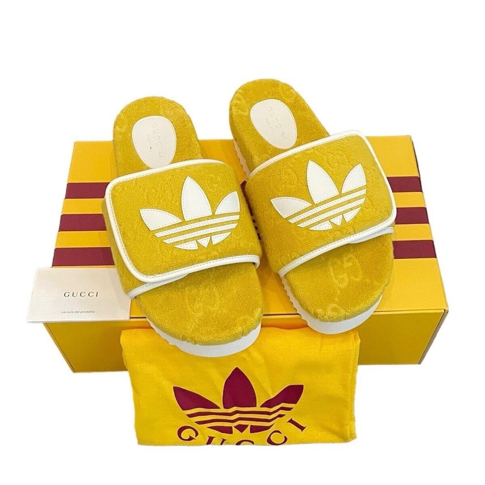 Men's Gucci x Adidas Magic Sponge GG Slides Yellow Size 11 Cotton Sponge