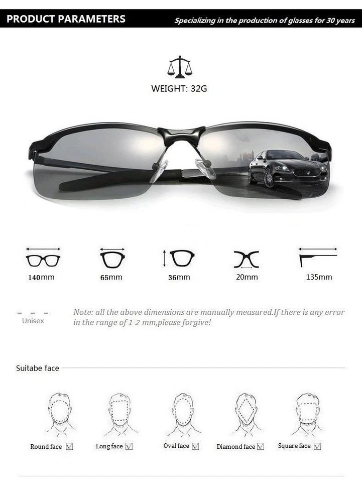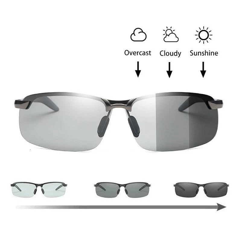 New Men's Photochromic Polarized Driving Sunglasses with Color-Changing Lenses