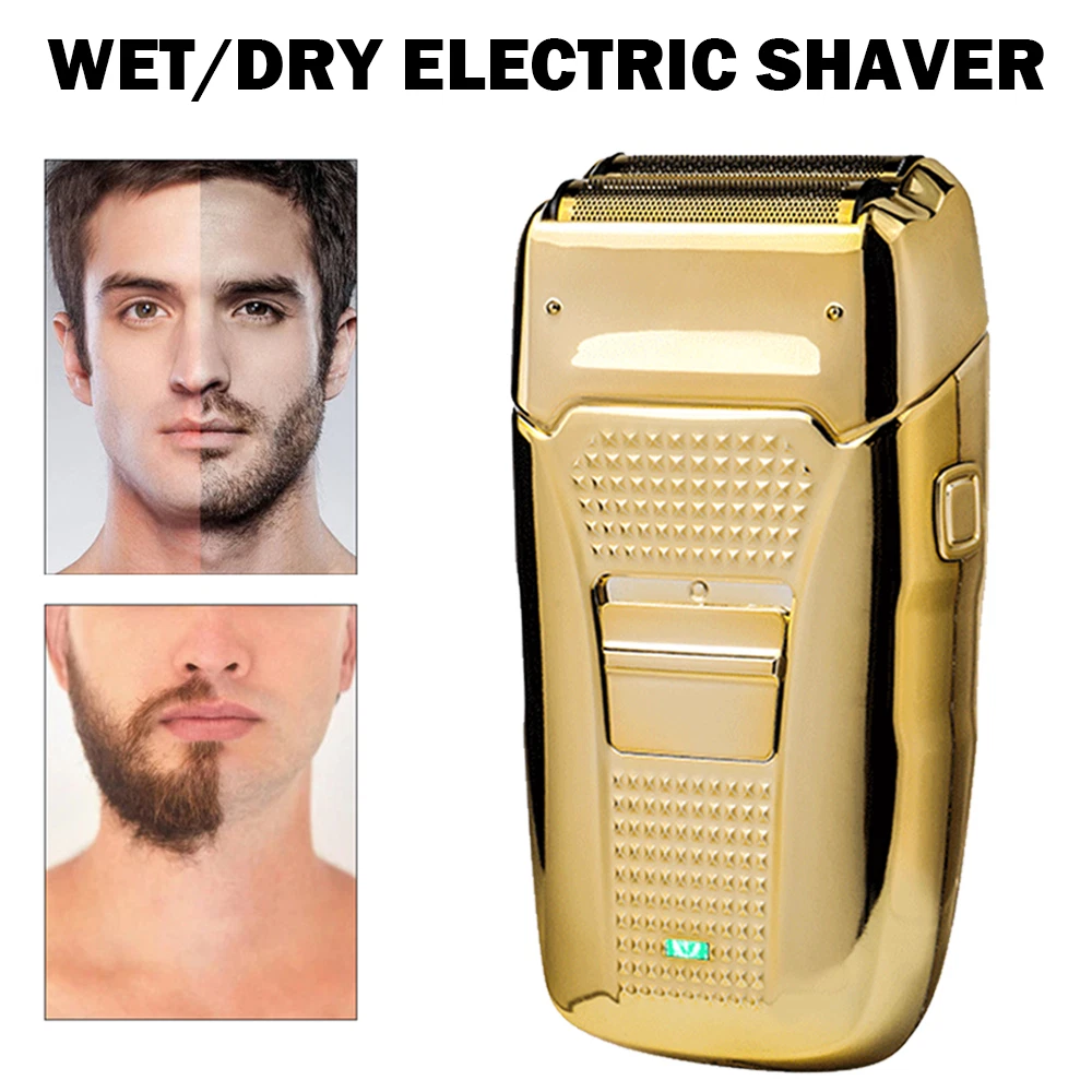 Des c ri p tion: Comfortably Fits Facial Contours: Alternate shaving design, elastic facial adjustment system, conforms comfortably to facial contours, no residue after shaving. Double Blade Design: Slim Screen Knife Net, Floating Face Adjustment to Quickly Capture Beard. Double blade design, fast cutting beards, incisive and not glued. Dual-purpose charging plug: Dual-use charging and plug, USB charging design, equipped with USB charging cable, can be connected to a variety of USB power ports, convenient charging. Multifunctional: Multifunctional, can be used to shave the bald head and shave the beard. Conforms to the ergonomic design, easy to grip and use. Easy to carry: Light and small in size, equipped with a storage bag, easy to carry when going out. Condition: 100% Brand New Item Type: Razor Material: ABS Color: Gold/Gray Power: 3w Charging Time: 5 Hours Use Time: 50 Minutes Battery: Lithium Battery 600mAh Battery Model: 14500 Razor Size: Approx. 12.5 x 6.5 x 3cm / 4.9 x 2.6 x 1.2in Weight : 270g(with box) Package List: 1 x Razor 1 x Storage Bag 1 x Transparent Cover 1 x Head Cover 2 x Half-Round Knife 1 x Cleaning Brush 1 x Manual 1 x USB Charging Cable