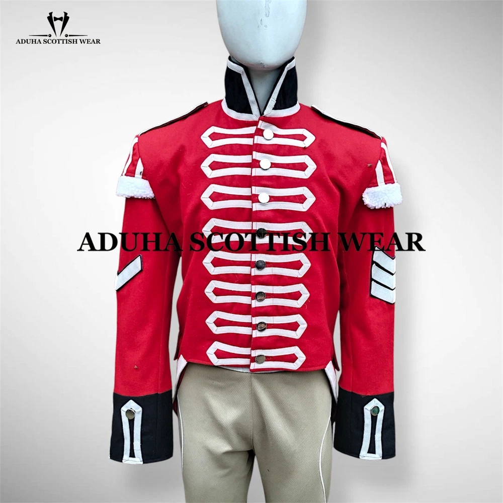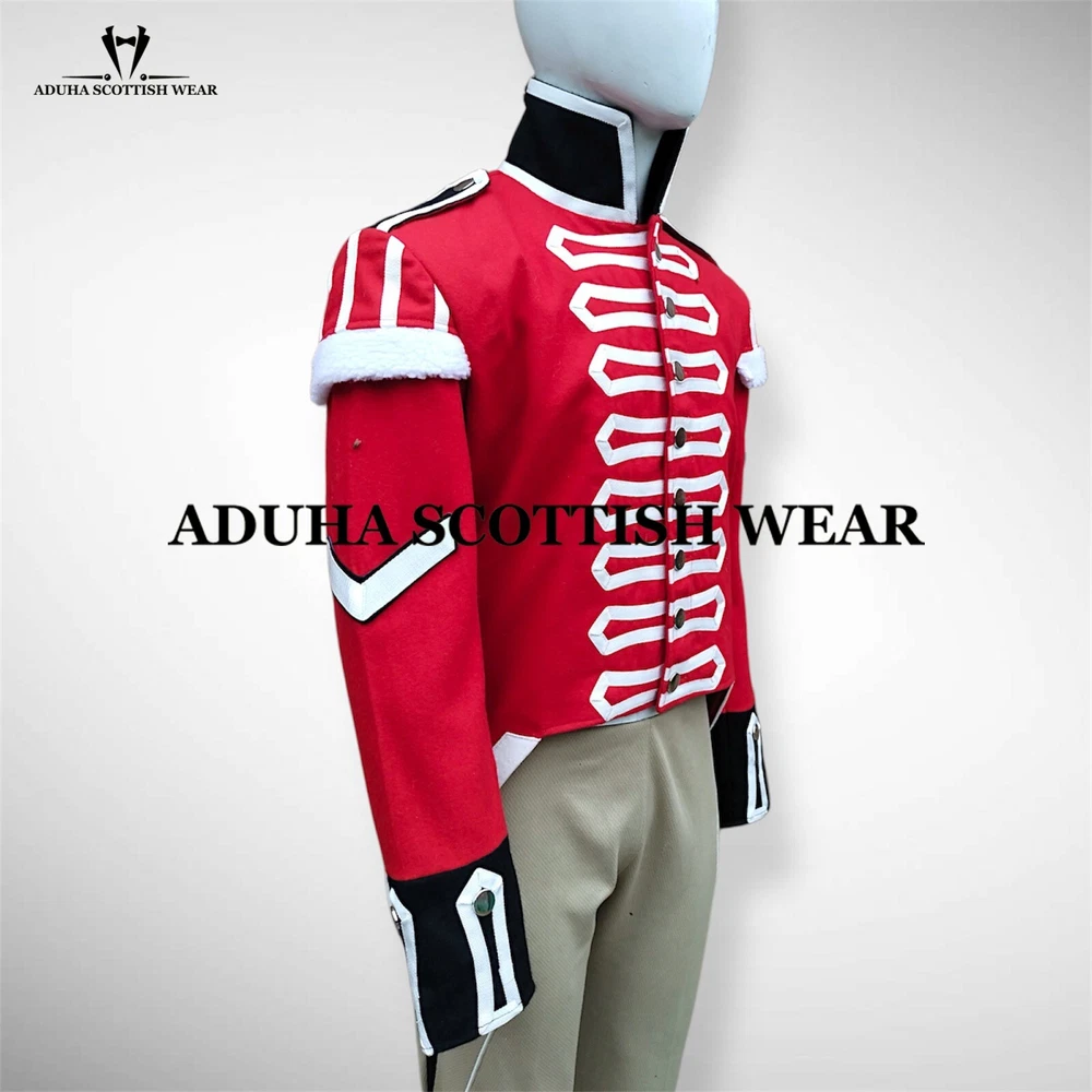 REQUIRMENTS ELEMENTS: 100% Wool Custom made Latest Products Color : Red/Custom color is available Tailored Stitched British Army UNIFORM VARIETY: Victoria Museum Digital British Napoleon Uniform WW2 British Army uniform British Army soldier Uniform Military Men's Dress WW2 British Army uniform Modern British Army uniform STUFF AVAILABLE: We offer this item in wool fabric Other Choices: Leather, Velvet, Cotton, Denim, Blend, Polyester. All item is Available tailor-made to your measurements, if you require the bespoke service then choose the tailor-made option. AVAILABLITY / ACCESSIBLE Just coat is included in price Trouser and vest are not included in price but available separate price as per customer request. Accessories is not included in price Due to camera reflection color could be slightly change. Available for Men, Women, and Children. Custom color is available. Plus size jacket are available