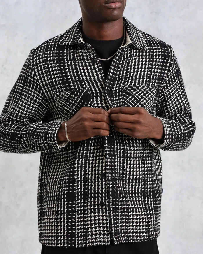 The Wax signature piece. The Whiting, our year-round staple, returns in a new woven design that mixes black and ecru yarns. This fabric is made sustainably by a family-run French mill using recycled cotton and features environmentally-friendly Corozo nut buttons and front patch pockets. Is it a shirt? Is it a mid-layer? Is it a jacket? It's all of those things and much, much more. The Wax Team is striving to make the most responsible choices in the production of our collections, which is why our products are mindfully designed and made to last. Designed to last Renewable tagua palm buttons Oekotex STEP fabric mill Traceable materials European fabric Low transport CO2 emmisions Responsibly manufactured