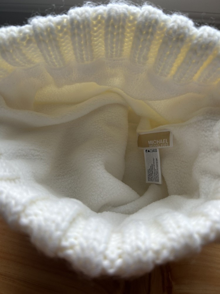 New Michael Kors Fleece-Lined Cable Knit Pom Beanie Hat in White Retail $68