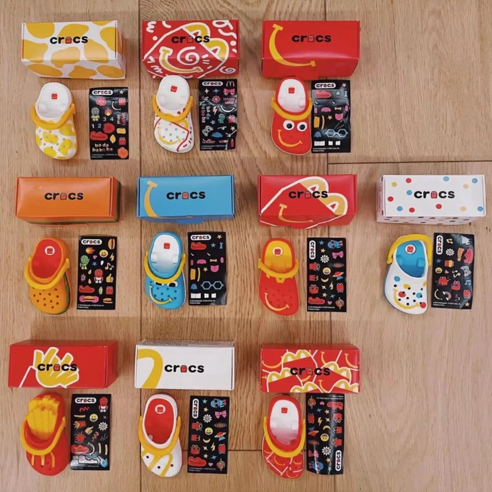 2024 McDonald's Mini Crocs Keychain Happy Meal Toys Completed Set 10 PCS size: about 7-8cm Each keychain includes box and sticker Please note that the shipping process may cause the box to deform slightly, if you can't accept this, please don't buy!
