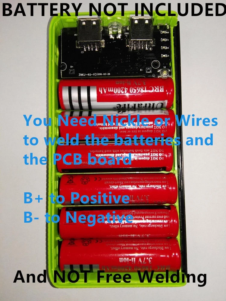 Product Description Features: 100% brand new and high quality Color: as picture 1. Support replacement of 18650 Li-battery. Easy to use and secure 2. Can install 6X 18650 battery (battery is not included, and you need to weld the batteries and the PCB board yourself) 3. Can also be use as Battery charger for 18650 batteries 4. Function: power bank and rechargeable 18650 battery charger 5. Plug and Play, power output using the USB port, plug the data cable to achieve portable, ready to charge 6. Suitable for iPhone6 plus/6/5S, for Samsung Galaxy S2/S3/S4, Note 2/3/4, for HTC, for Sony, for Motorola and other cellphones with a micro usb socket(can charge all cell phones with your own USB cable) Cell type: 18650 battery Input: DC 5V/1A Output: DC 5V/2.1A Package Content: 1 * DIY Power Bank Case Kit(Batteries not included) Shipping 1. Items sent from US warehouse. 2.Receiving time = Processing time + Shipping time . 3. Processing Time: Around 1-2 business Days . 4. Shipping Time: 3-5 business day. it may have a little delay during some holiday (such as Christmas), any problem, please feel free to contact. Returns 1. 30 days warranty from the purchased date. Please contact us via email before returning the defective item. 2. Our warranty does not extended to any product that are physically damaged or that are not under normal operating conditions as result of misuse or improper installation on the buyer/user's part. 3. Return items should include the original packaging and all accessories. buyers MUST contact us for the returning address. 4. In all cases, buyers pay shipping fees at their own cost to return products for exchange or refund. We will be responsible for the postage of replacements. Refund will be made upon receipt of the returned item. Contact Us If you have any question, please e-mail us immediately, we will reply you as quickly as possible. We care about our valued customers, and will always try to help you. About Us We are committed to providing you with the best quality products and services. We hope your shopping experience is easy and enjoyable. Payment We accept all verified payment from eBay. You may also like 1:72 Scale US SBD-3 Dive Bomber Fighter Alloy Aircraft Model Military Plane NEW 45.57 USD 3.89 USD 13Pack Metal 0.6-2.0mm 90mm Long Screwdrivers Repair Tools For Watchmakers Watch 15.04 USD Foot Pedal-Pressure Control-Valve 3 Way 2 Position 1/4" Air Pneumatic Switch 25.43 USD Lower Duct Hose for Shark Rocket True Pet Slim Vacuum HV300 HV322 320 380 380UK 9.95 USD Generic Part Watch Balance Wheel Hairspring For ETA 2824-2 2834 2836 Movement F 6.35 USD 3.89 USD Durable Abrasive Mounted Stone For Rotary Tools Grinding Stone Wheel Head Dremel 9.95 USD powered by