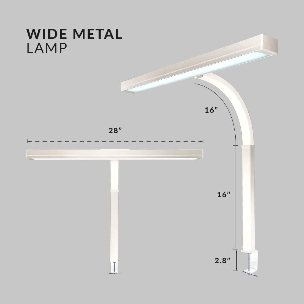 Included Components: 1 Lamp, 1 Clamp, 1 Adapter Number of Pieces: 1 Item Weight: 5 Pounds Style: Modern Material: Silicone, Metal Mounting Type: Tabletop Wattage: 30 watts Voltage: 120 Volts Indoor/Outdoor Usage: Indoor Batteries Included?: No Special Features: Adjustable Color Temperature, Dimmable Item model number: 9509LED-28 Batteries Required?: No Lamp Type: Desk Lamp Shade Material: Metal Shade Color: white Size: 28 Inches UPC: 744110141818 Light Source Type: LED Switch Type: Touch Recommended Uses For Product: Reading, Painting, Sewing, Soldering, Drafting Is Waterproof: False Control Method: Touch Brand: Does not apply Finish types: Painted Room Type: Office Brightness: 3000 Lumen Connectivity Technology: USB Number of Light Sources: 324 Special Feature: Adjustable Color Temperature, Dimmable Type: Does not apply Color: White Number of Items: 1 gtin13: 744110141818 Lighting Method: Adjustable Power Source: Corded Electric Base Material: Metal Country of Origin: China Finish Type: Painted Installation Type: Tabletop Water Resistance Level: Not Water Resistant Part Number: 9509LED-28 Color Temperature: 3000 Kelvin Product Dimensions: 28"D x 2.5"W x 35.19"H
