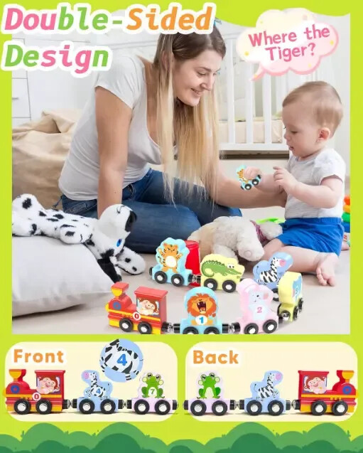 New Montessori Toys for 1 2 3 Years Old Boys Girls Birthday Gifts US Warehouse - FREE & FAST Shipping in USA Product Description: FUN MONTESSORI TOYS: The montessori toys contain 11 pieces (a monkey engine with animal train cars form number 0 to 10) magnetic train set and a storage bags. chunky wooden pieces to ensure tiny hands can easily grasp the pieces. Greatly encourage the development of your toddler's hand-eye coordination and attention span. SAFE AND WELL-MADE: Made with high quality, non-toxic wood materail and water-based paint, this learning toys can last for years. The storage bag provided is easy to collect store and carry after playing. The edges of wooden train cars are smooth , it keeps your 1 2 3 years old plus boys and girls play safely. LEARNING THROUGH PLAY: While conneting the animal trains, children need to sit and balance core muscles to move hands freely and figure out the train cars in order. Strong magnetic makes sure your little ones connect freely. This kind of activity can attract their attention and interest, which can keep your kids engaged for hours. Makes a great gift for hands-on, screen-free play. IDEAL GIFTS FOR TODDLERS : Are you still hesitated to choose birthday, stocking stuffers or Christmas gifts for the little ones? This montessori toys for toddlers 1-3, 2-4 years is definitely the amazing choice that you won't regret! Feedback: 1.Any question for your order, please contact us in time, we will reply to you within 24-48 hours and give you a satisfactory answer. 2.If you are satisfied with our products and services, hope to take up a little precious time to leave feedback reviews for our products.Thanks! 3.Your satisfaction is our effort. Welcome to order again! Have a great day! Our Policy: 100% Satisfaction Guarantee 30 Days Return and Refund Guarantee Free and Fast Shipping in USA, US Warehouse 15% of restocking fee will be charged for return it