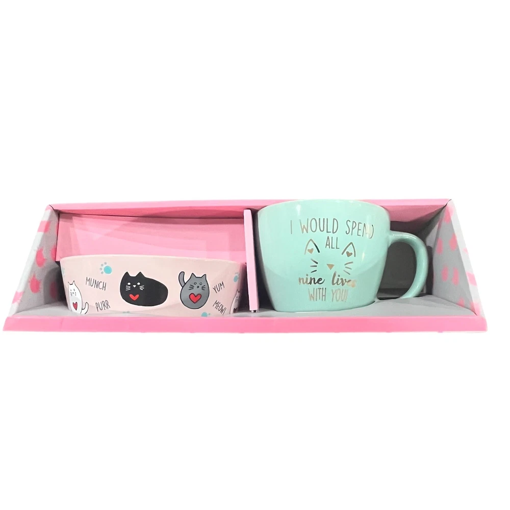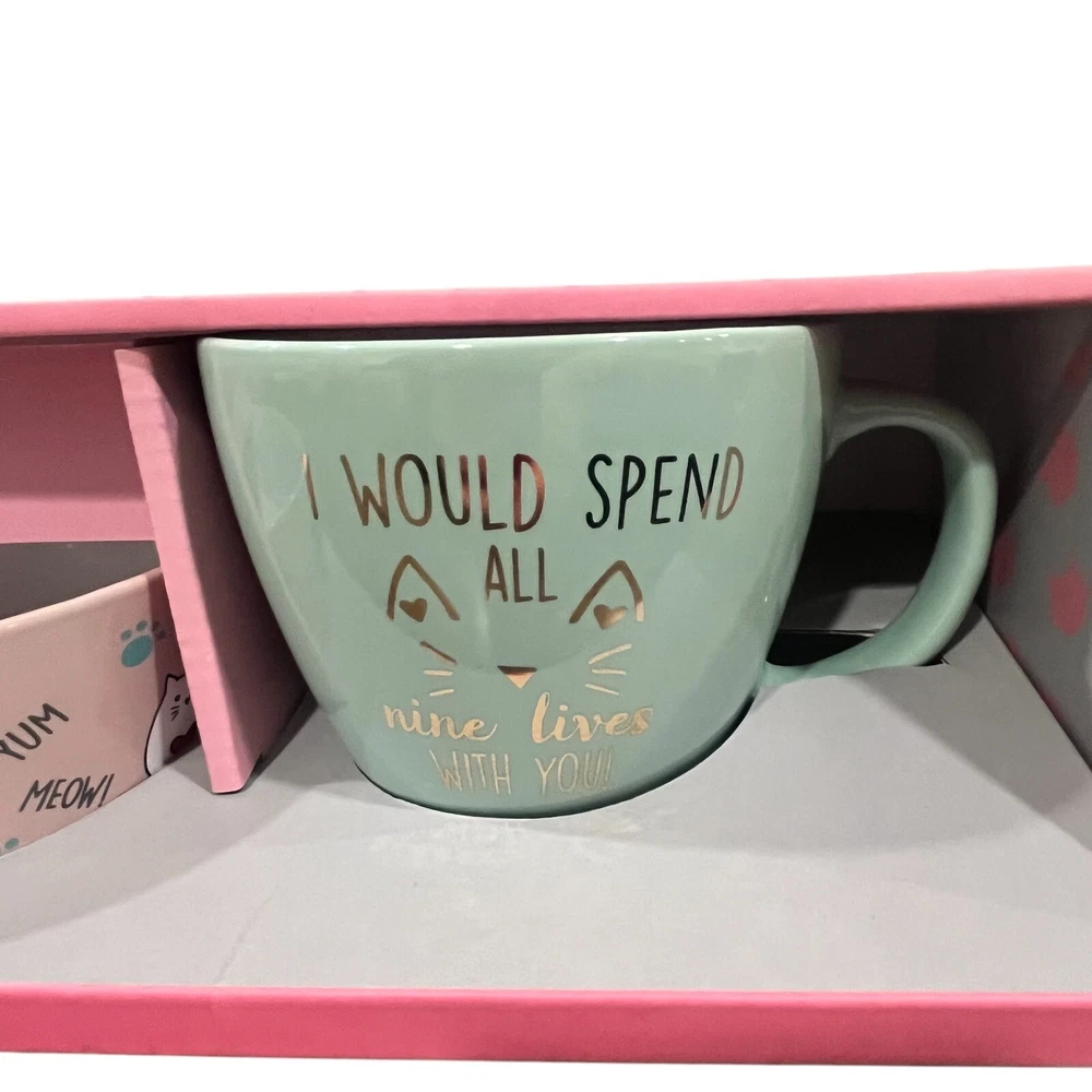 New! Mug & Pet Bowl Set “I Would Spend All Nine Lives With You” Kitty Cat Lover