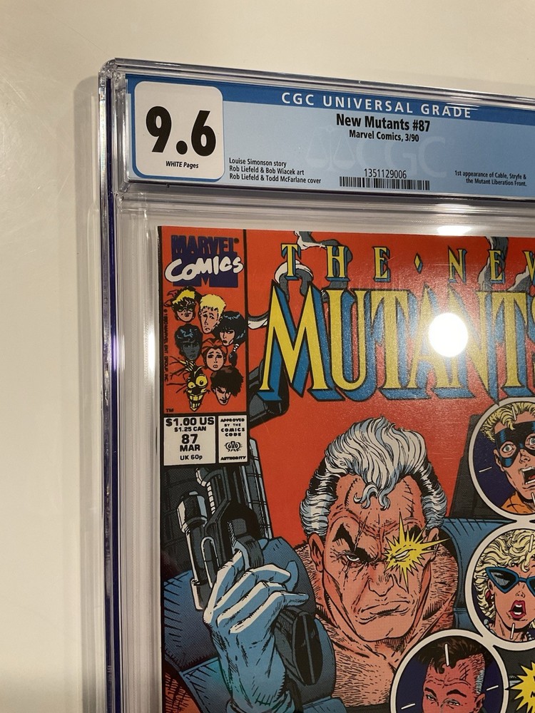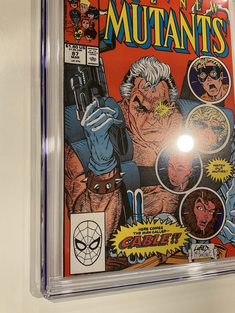 The product is a comic book titled "New Mutants 87" with a grade of 9.6 Near Mint+, featuring the character Cable from the popular superhero team the New Mutants. Published by Marvel Comics, this comic book is a sought-after collectible for fans of US Comics and comic book enthusiasts. With its high grade and iconic characters, this comic book is sure to be a valuable addition to any collection.