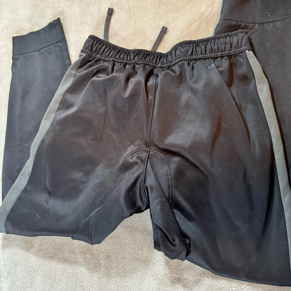 Elevate your workout game with these brand new Nike Therma Fit Training Joggers. Designed with a pull-on closure for easy wear, these tapered leg pants are perfect for any season with their lightweight, moisture-wicking, and breathable features. The pants also come with pockets for added convenience and are machine washable for easy care. Ideal for both activewear and casual wear, these black pants are made of polyester with a solid pattern and Nike branding. The pants are perfect for athleisure, with a compression level of moderate and a waist compression area. These pants are from the Nike Therma product line and are in a size medium (M).