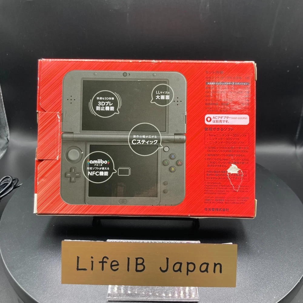 New Nintendo 3DS XL LL Super Smash Bros Edition Console Handheld System Description Condition: NEW Language: Japanese This is the Japanese version. This is the Japanese version, so please make sure it is compatible with the product in your country before purchasing. If it is region locked, please unlock it yourself. Take your gaming to the next level with the New Nintendo 3DS XL LL Super Smash Bros Edition Console. This special-edition handheld system features exclusive artwork celebrating the iconic Super Smash Bros franchise, making it a must-have for collectors and gaming enthusiasts. Key Features: Brand: Nintendo Model: New Nintendo 3DS XL LL Super Smash Bros Edition Design: Unique Super Smash Bros-themed artwork on the exterior Region: Japan Import (region-locked to Japanese 3DS games) Compatibility: Compatible with New Nintendo 3DS, 3DS, and DS games (region-specific for 3DS titles) NFC-enabled for amiibo functionality Product Specifications: Console Size: Approx. 160 x 93.5 x 21.5 mm Weight: Approx. 329 grams Display: Top Screen: 4.88 inches (3D display) Bottom Screen: 4.18 inches (touchscreen) Additional Information: Power Supply: Includes 100V Japanese adapter (adapter required for use in other regions) Origin: Made in Japan Packaging: May include original box and manuals (if applicable) The New Nintendo 3DS XL LL Super Smash Bros Edition is not just a powerful gaming console—it’s a piece of gaming history. Whether you’re battling with friends in Super Smash Bros or enjoying other Nintendo classics, this console offers an immersive and portable gaming experience. Don’t miss your chance to own this limited-edition masterpiece! Shipping We will send the item by FedEx, DHL, SpeedPAK, or Japan Post. We always send the item with a tracking number, So please place an order without any concern on delivery. You can always track the delivery status. Delivery date: 5-10 business days to US(FedEx and DHL), 8-12 days to US(SpeedPAK), 10-20 days to US(Japan Post). Delivered to all countries within 5 -20business days. Shipping is only available to the address registered in eBay. If you want us to send another address, please change your address on eBay and then place an order. Shipping is available from Monday to Friday. Weekends are not available because freight companies are closed. ?Delivery may be delayed due to the weather, customs clearance, and conditions of the destination country. The delivery method may change depending on the country. International Buyers - Please Note: Import duties, taxes, and charges are not included in the item price or shipping cost. These charges are the buyer's responsibility. Please check with your country's customs office to determine what these additional costs will be prior to bidding or buying. Thank you for your understanding.