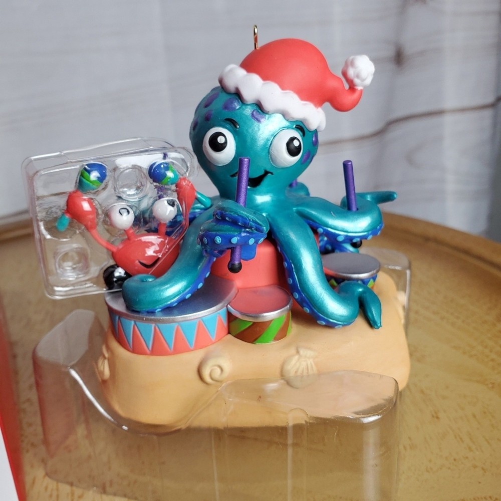 New Open Box Hallmark Keepsake 2022 Festive Octopus Christmas Musical Ornament -Colorful crab and octopus playing drums -plays Jingle Bells -batteries not included -Artist - Sharon Visker -Size 3.88''x3.31" Measurements in photos. Same day / next day shipping Offers accepted Like for price drops and deals Bundle 2 items or more and save! Thank you! 1lb CH