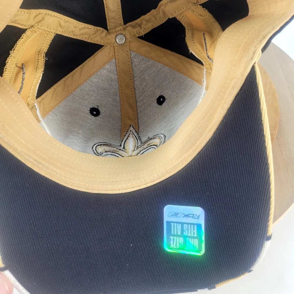Show off your love for the New Orleans Saints with this Reebok NFL Equipment Football Hat. The black and gold colors perfectly match the team's colors. This unisex adult baseball cap is made from high-quality materials and has an OSFA fitted design. Perfect for football season, this hat is a must-have for any fan. The cap is made in Bangladesh and has not been modified in any way. Get your hands on this officially licensed NFL product today!