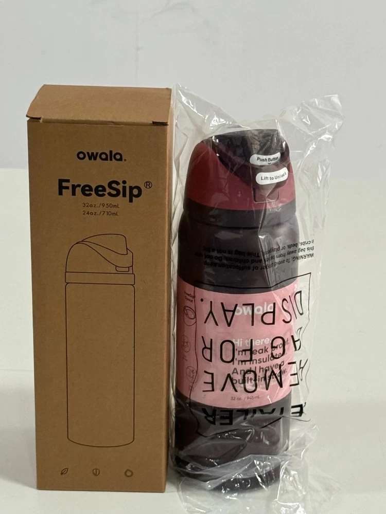 New Owala Freesip Insulated Stainless Steel Water Bottle - Black Cherry 24/32oz The Owala Freesip Insulated Stainless Steel Water Bottle in Black Cherry is the perfect choice for avid campers, hikers, and outdoor enthusiasts. With its sleek design and durable stainless steel material, this water bottle will keep your drinks cool for longer periods, making it ideal for staying hydrated during your outdoor adventures. The lifetime manufacturer warranty ensures that you can trust in the quality and longevity of this product. Additionally, the sport-themed design gives it a trendy and functional appeal for anyone looking to stay hydrated in style. Payment Delivery details Terms of sales About us Contact us Payment Please make sure your address in PayPal is matched with your shipping address before you pay. Delivery details 1.We ship to your eBay or Paypal address. Please make sure your eBay and Paypal address is correct before you pay. 2.Items will be shipped within 1-3 business day when we received payment. 3.Delivery time depends on destination and other factors. Terms of sales We are so sure that you are going to be 100% satisfied with your purchase. We are so certain that you will love our products that we guarantee your purchase price back if you are unsatisfied for any reason. All items in the order must be returned to us within 30 days of receiving the order in the event of a return. Be sure you include your ebay id and the item number you are returning. About us 1. Usually, we reply for the messages within 24 hours, if you do not get response within 1-2 business days (Excluding the holidays), please check your Messages box one more time or Please email us AGAIN. 2. Email is the priority of our customer service, if you can't get us, please choose live response. Contact us 1. If you are satisfied with the items and our service, please take a minute to leave us a positive feedback, we will gladly do the same for you. 2. Please do not hesitate to contact us to get a better solution before you leave a neutral or negative feedback, even open a case, we will provide you the best service. 3. We’re always with you, sincerely thanks not to leave neutral/negative feedback or open a case before receiving our replies, thanks to consider our working time so maybe we couldn’t reply to you in a timely manner. Personalize No Brand owala Type Water Bottle Manufacturer Warranty Lifetime Theme Sport Features Insulated Material Stainless Steel Set Includes Bottle Country of Origin China