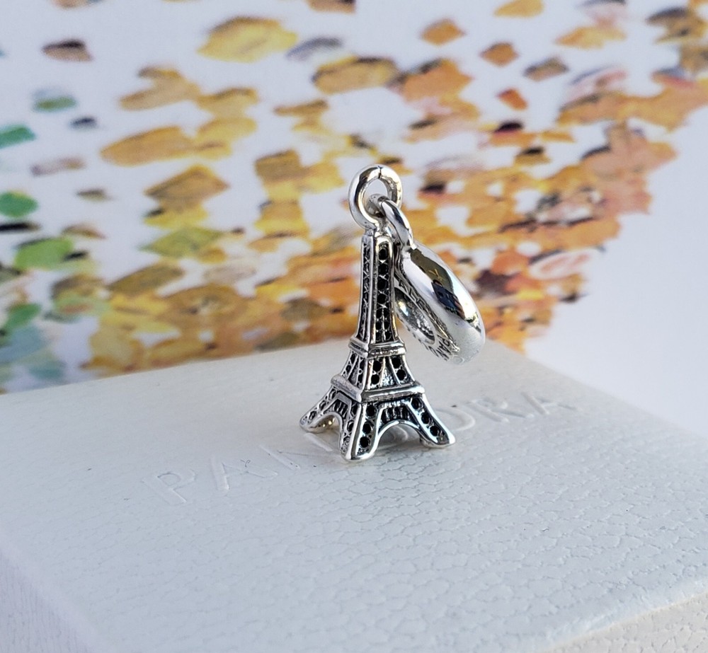 New Pandora Authentic Eifel Tower Dangle Charm The charms are new, never worn. Some charms are used for pictures and advertising purposes only. All charms come in Jewelry Pouch with Pandora logo on it. Bracelet and Box NOT INCLUDED.