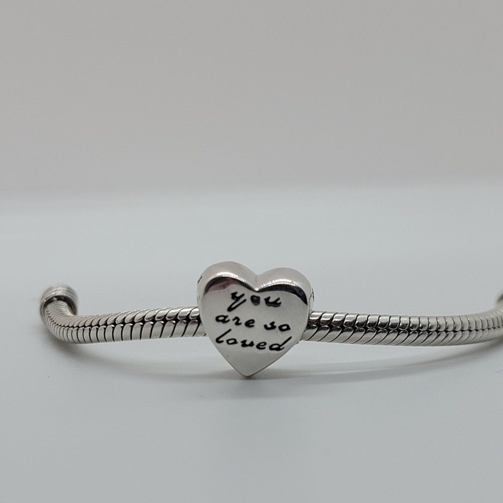 New Pandora Authentic You Are So Loved Charm The charms are new, never worn. Some charms are used for pictures and advertising purposes only. All charms come in Jewelry Pouch with Pandora logo on it. Bracelet and Box NOT INCLUDED.