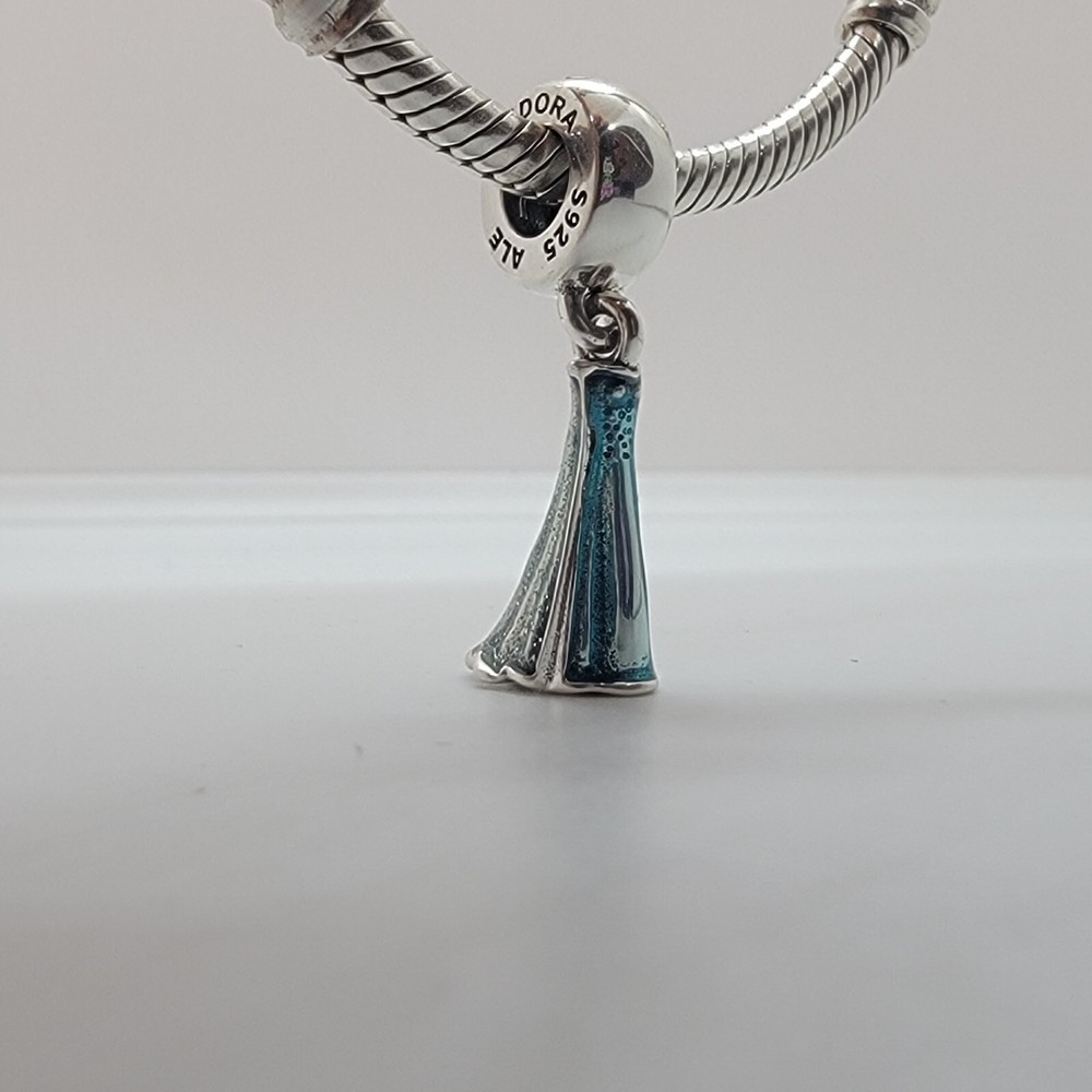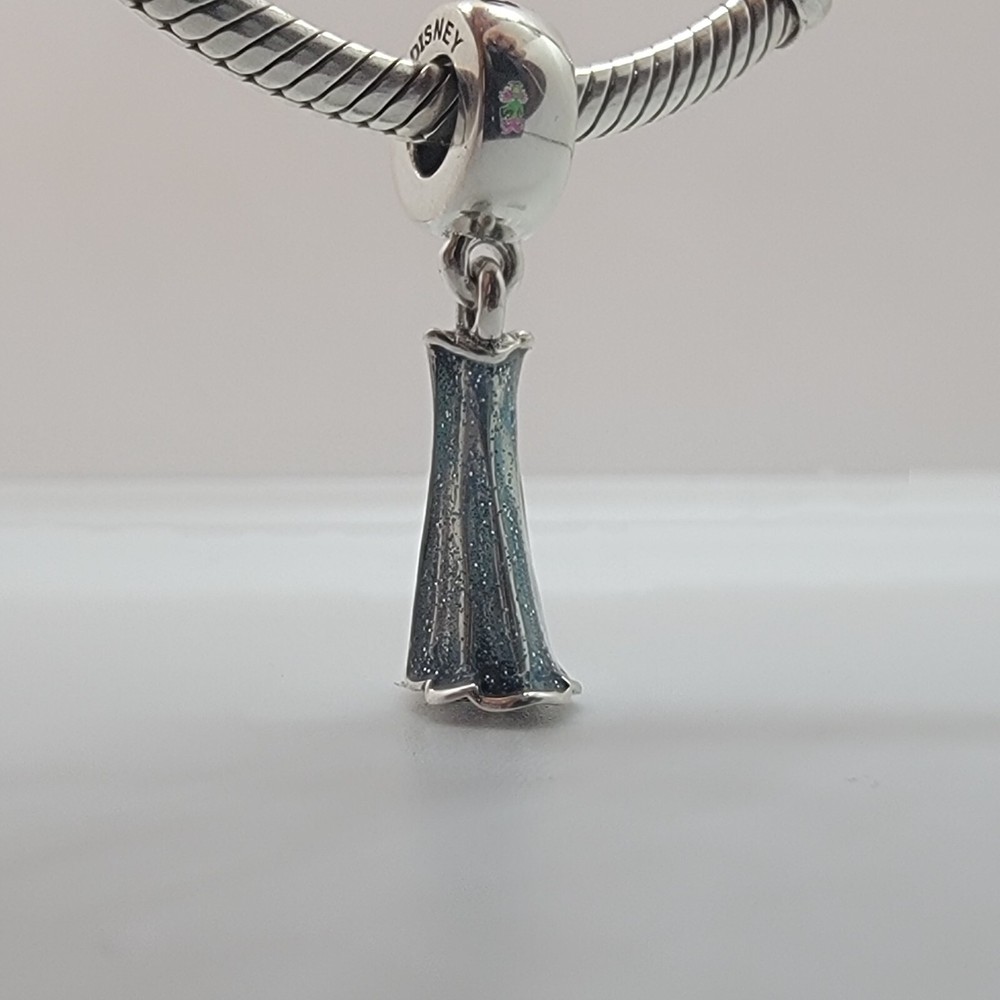 New Pandora Authentic Disney Elsa Dress Dangle Charm The charms are new, never worn. Some charms are used for pictures and advertising purposes only. All charms come in Jewelry Pouch with Pandora logo on it. Bracelet and Box NOT INCLUDED.