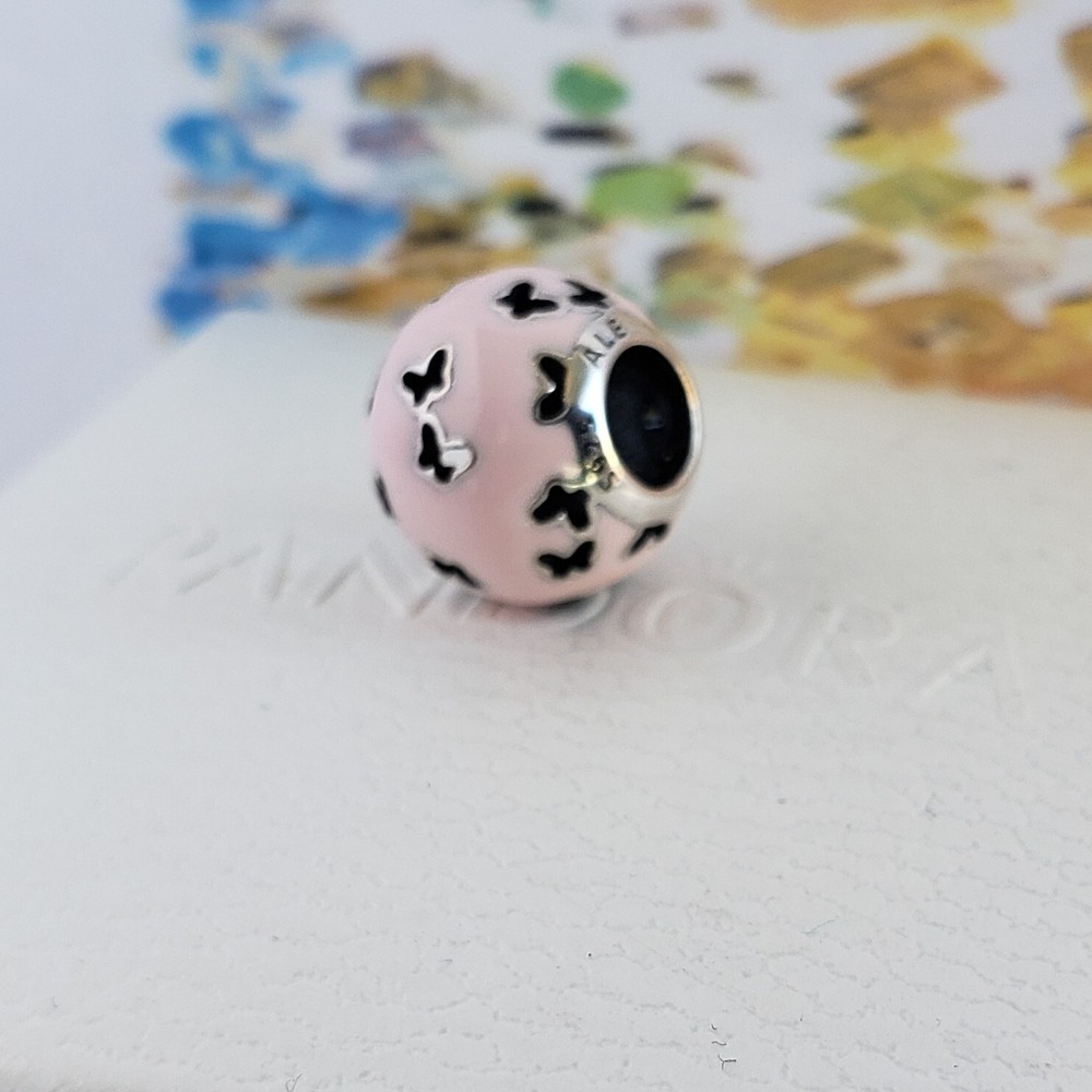 New Pandora Authentic Pink Butterfly Openwork Charm The charms are new, never worn. Some charms are used for pictures and advertising purposes only. All charms come in Jewelry Pouch with Pandora logo on it. Bracelet and Box NOT INCLUDED.