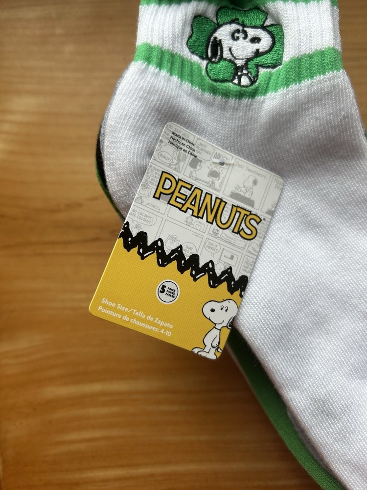 New Peanuts Snoopy Woodstock Shamrock Crew Socks 5-Pack πŸ€
