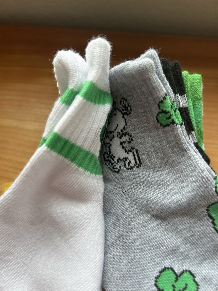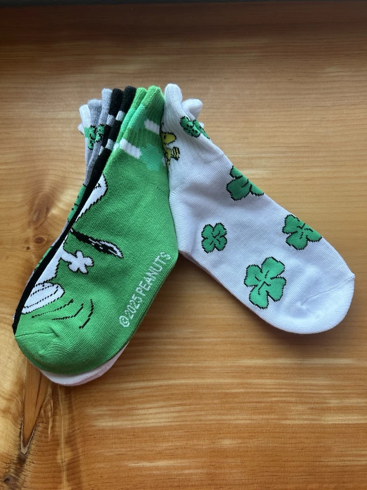 1. These Snoopy and Woodstock socks are so cute and comfy! The shamrock design is perfect for spring, and the soft material feels great all day. Love that they come in a pack of fiveβ€”such a fun way to add a little Peanuts charm to my outfits. Fits perfectly and stays snug without slipping. Definitely a must-have for any fan!