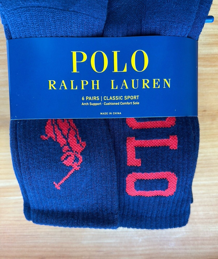 Polo Ralph Lauren Men's Navy Classic Sport Crew Socks 6-Pack Red Pony (10-13). Condition is New with tags. Shipped with USPS Ground Advantage.