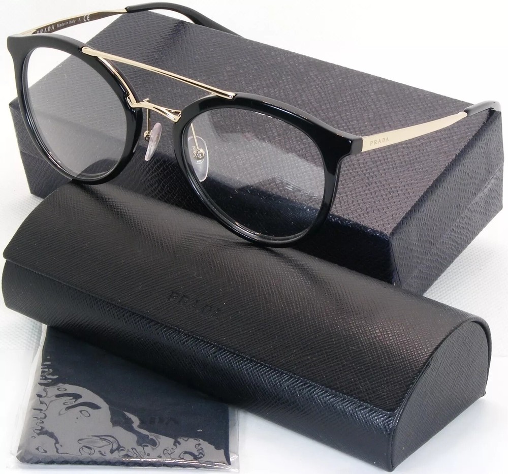 New Prada VPR 15T Black Gold Optical Frames 52mm Authentic Designer Eyeglasses