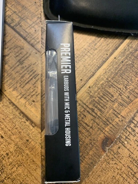 Premier Earbuds with Mic, New in Box. In-Line Microphone, Noise Isolation, Single click Answer/End, Double Click Next Track, 3-Click Previous Track, Up/Down Volume.