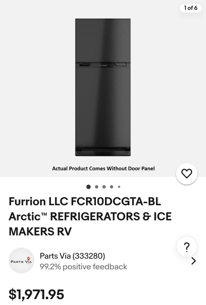 New in unopened box Furrion Arctic chill 10 cubic foot rv fridge. Perfect for Rv, camper, off grid, van life, moto van etc. Won at local auction, no obvious damage to external box that would indicate dent or damage, will remove box to inspect for serious potential buyer if desired. MSRP $1930. Will need to purchase the door panels, these did not come with them to allow you to match your space. They're available on ebay and Amazon. Feel free to ask questions or shoot a reasonable offer