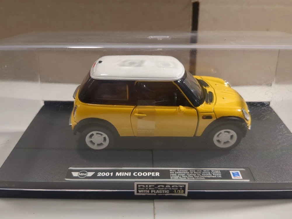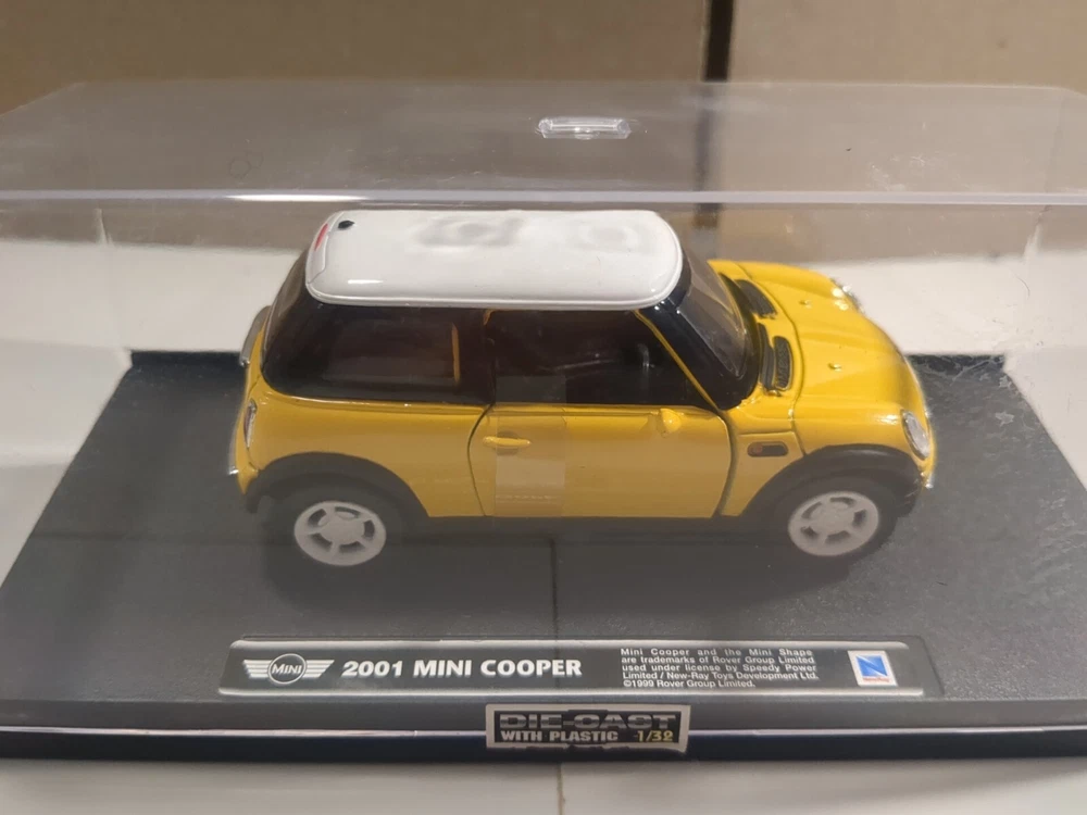 This New-Ray diecast model of a 2002 Mini Cooper in yellow is a must-have for any car enthusiast, young or old. The 1:32 scale and pullback feature make it a great addition to any collection. This model is part of the City Cruiser Collection and is recommended for children ages 4 and up. It is made of high-quality materials and is safe, according to California Prop 65 standards. The Mini Cooper model is perfect for both boys and girls and is a great gift for any occasion. No box,, Slight wearing,, See pics for condition