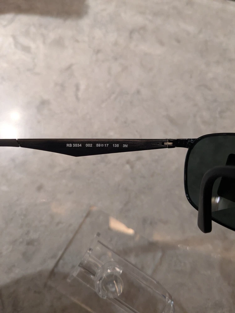 New Ray-Ban RB 3534, Polished Black metal frame. Color code 002 Sunglasses, with Ray-Ban Authentic G15 Lenses Size 59-17-135. Comes with Ray-Ban Case