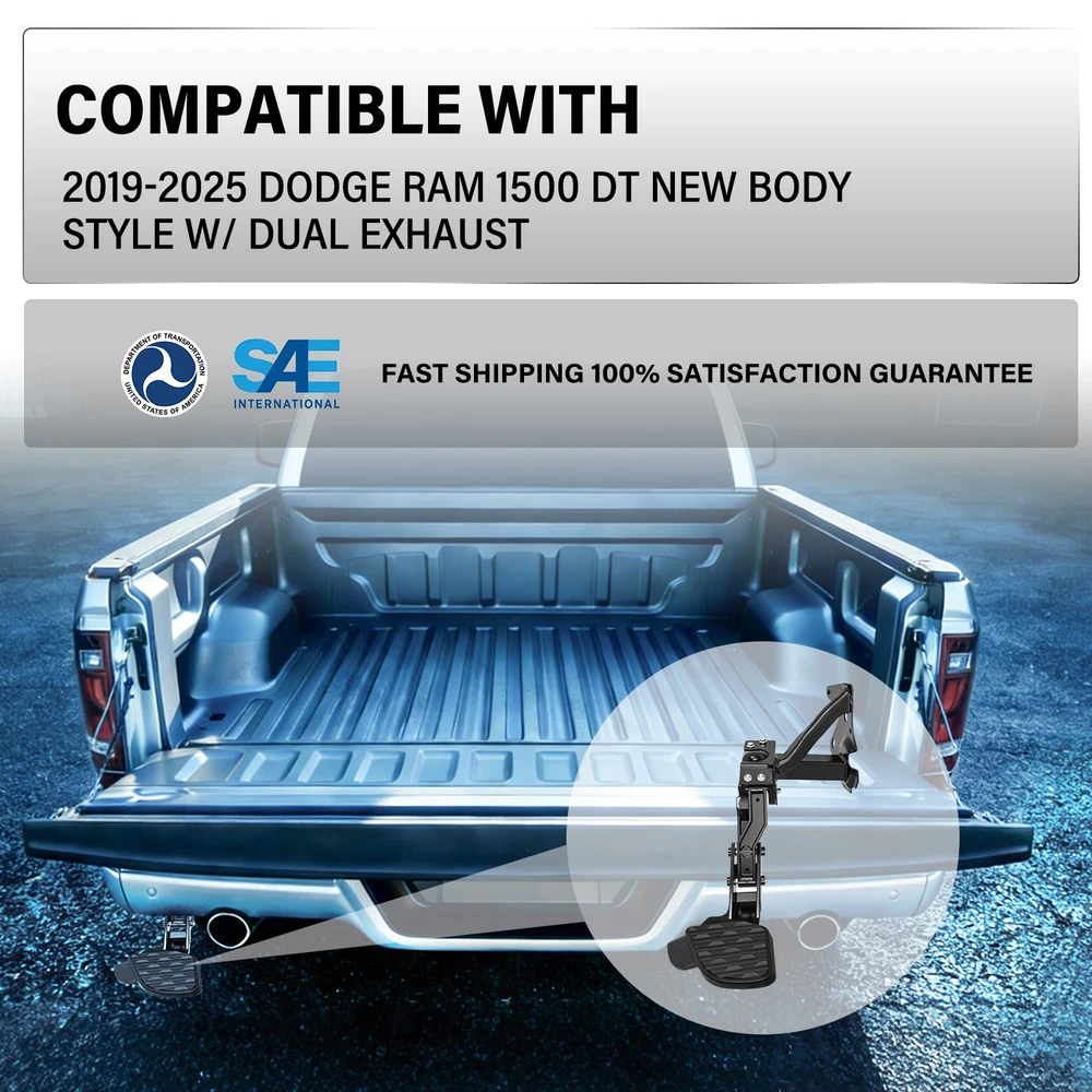 Store Categories Store Categories Headlight Tail light Other New Rear Bed Step Retractable Bed Step For Ram 1500 DT 2019-2022 w/Dual Exhaust Product Description 馃敹 Tired of struggling to reach tools deep in the truck bed? Worried about slipping on tires or a slick bumper? Introducing the rear bumper foldable step, specifically designed for the 2019-2022 Ram 1500 DT ( New Body Style)! This step perfectly solves the loading and unloading challenges that come with a lifted truck, all owing you to step in and out of the cargo box with ease. 馃敹 Specificatio n 路 Location:Rear 路 Condition:100% Brand Ne w-Fit and Quality Guaranteed! 路 Color: Black 路 Material: Aluminum + Steel + Plastic 路 Product fit锛欵asy installation and direct replacement. 路 Warranty: 1 Years Effortless Operation, Deploys Instantly, Hidden Design, OEM-Grade Aesthetics High Load Capacity, Rock-Solid Stable, Precision Fit, Vehicle-Specific Design 馃敹 Package included 1 脳 Rear Step Kit All Accessories in the Picture Are Included. 馃敹 Veh icles Types Compatibilit y 2020-2021 Ram 1500 3.0L V6 DIESEL 2019 Ram 1500 3.6L V6 FLEX DOHC 2019-2021 Ram 1500 3.6L V6 ELECTRIC/GAS DOHC 2020-2021 Ram 1500 3.6L V6 GAS DOHC 2019-2021 Ram 1500 5.7L V8 ELECTRIC/GAS OHV 2019-2021 Ram 1500 5.7L V8 GAS OHV 2022 Ram 1500 Big Hom/Limited Longhorn 82215289AG, 82215289AH, 82215289AB, 82215289AC 82215289AD, 82215289AE, 82215289AF NOTE: For fitment details, please refer to the Compatibility section of this listing page to see details.Thanks Payment Policy Shipping Policy Returns Policy Contact us Payment Policy Paypal is the preferred method of payment. We also accept payment via Paypal, Debit Card, Visa, Master Card, Discover, and American Espress. Payment is expected within 3 days after puchased. Sales tax is required on all purchased orders. Shipping Policy Or ders will be processed and shipped out within 1-2 business days after payment has cleared. (NOTE: Business days do not include weekend & holidays) Insufficient shipping information will delay the order process so please read the invoice carefully during checkout. Make sure that the shipping information is correct to avoid delays. We will not be responsible for the delivery or insurance charges incurred in returning item back to us. Restocking Fee will apply for all returned items due to insufficient information. We are unable to ship any item(s) to P.O. Box address. Buyer must provide physical address when ordering. We also don't ship to PR, HI, AK, GU, VI, APO . Returns Policy Bumpers are not returnable, please check carefully before purchasing! Contact us Any Questions, Just feel free to contact us on eBay. We will reply you in 24 hours. Copyright 漏 2023 Dianxiaomi