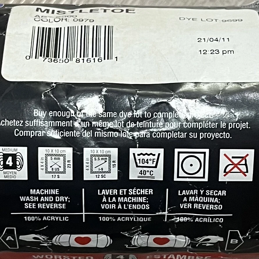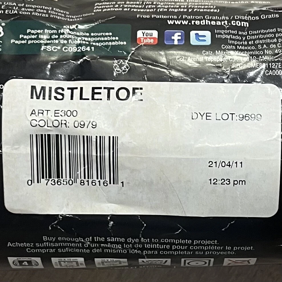 New Red Heart Super Saver Mistletoe Yarn 5 oz 244 yards Red Green White