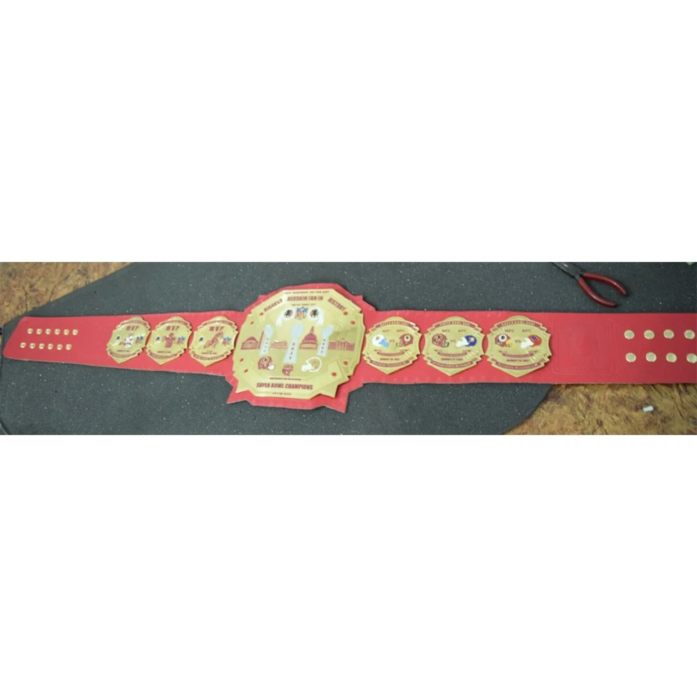 Welcome to our shop ------------------------------------------- We are specialist in manufacturing handmade products:: Our wide range of products include: >>>>Championship Belts WWE | WWF | AEW | UFC | WBC | WCW Product Description *** New Redskins Championship Wrestling Brass 2mm Belt *** Plate Metal: Brass (Zinc available on request with additional cost) Strap: 100% Leather Largest Waist Size: Fits upto 46'' Belt Length: ~50" Weight: 6.17 lbs | 2.81 Kg Plate Thickness: 2mm (4mm Version available on demand with additional cost) ::The belt is well crafted and manufactured to meet the quality demands of fans:: Get your hands on this marvelous piece now! Note: If you need further details kindly inbox us, we will try to be as responsive as possible. ------------------------------------------- Return Policy: Generally we don't have much complains on our products and we make sure to 100% satisfy our clients. We send the product in well Bubble Wrapped packaging so there is highly unlike chance of getting damaged item. In case there is a damage, we will try to give partial refund or you can ask for full refund within 30 days after returning the belt to origin. NOTE: 1. If you have placed the order by mistake or you have purchased a wrong item then we are not going to refund that. 2. Buyer will pay the shipping fee of returning the belt. ------------------------------------------- Happy Shopping! :)