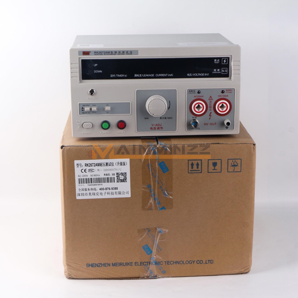 New Rek RK2672AM Withstand Hi-Pot 5KV(AC/DC) 100VA Tester Withstand Voltage RK267 series voltage withstand test instruments are for general- purpose HV test operation, It can be widely used for voltage withstand test in electrician’s assistant instrument , rubber-wooden facility , voltage convertor , wires , power meter , motor, power supply plug, cables and all kinds of electronic and electric products. As the launch of the national security standard, Voltage withstand instrument has become one of necessary withstand test instruments to the radio and electronic products manufacturer. Operating request: Environmental temperature 0~40 ℃ R elative dumidity≤75% Paraments Model RK2672AM Description Klgital display with remote control Test Voltage (AC) 0~5KV +/-5% Test Voltage (DC) 0~5KV +/-5% Leakage Current (AC) 0~2/20mA +/-5% Leakage Current (DC) 0~2/10mA +/-5% Timing (s) 0~99s; Manual control Pmax 100VA Input Voltage 220V Weight 24LB Details Pre-used Caution Read the following items carefully before operating RK267 series voltage withstand test instrument 1. Use three-hole power supply plug and insure GND connection well. 2. GND port and power supply GND port should be connected well 3. Wear insulation glove, stand on insulation mat 4. Anti-clockwisely circumvolve “ V-ADJ ” rotary switch to the maximum before turn on test instrument. 5. Before preset all functions, reset instrument 6 . Don ’ t connect test port and test wire when doing test 7. Don ’ t connect HV output port with shield box or GND wire to avoid instrument damage. 8. Turn off power when accident take place 9. Examine and repair when Indicator or annunciator is out of function 10. Operate carefully to avoid hazard when take the remote test. 11.The instrument must be placed on the worktable of conductive materials 12.The operator can not wear clothes with metal decoration or wear metal accessories 13.When the tester is in the test conditions, the test line, the test probes, output end , and the test objects are all with high pressure, do not touch! Item Included: Withstand Hi-Pot Tester - RK2672AM 1×Withstand voltage test equipment 1×High voltage test bar 1×Remote control test bar 1×Ground wire 1×power cord Notice: Because,the international air shipping forbid to ship liquid,powder and batteries, If you purchased goods containing such items, we will not be putting them packing. Thank you for your support. Payment must be made within 12 days after the auction/bid ends, or eBay will open Unpaid Item case automatically later. Please read this before buying International Shipping may Be Delayed Due to Customs. Customers are Responsible For All Import Charges, Tariffs, Duties, Taxes, and Fees Associated with Import of the product. Shipping Charges does not include any Import Charges, Tariffs, Duties, Taxes, and Fees Associated with it. We are not responsible for undeliverable address. We reserve the right to charge the shipping fee again for returned items due to wrong address. Items are generally shipped within 10 business day after your payment has been cleared (Sat. & Sun. excluded.) Dear friend, your happy is very important to me!.we stand behind every product we sell.Your bid is a contract - Place a bid only if you're serious about buying the item. If you are the winning bidder, you will enter into a legally biding contract to purchase the item. If payment is not received within 7 days, item may be offered to the next highest bidder or relisted at the seller's sole discretion.If you're not pleased with your purchase, we'll be happy to make an exchange or refund the product price less S&H within 7 days of your purchase. For any exchange or refund, we need the original receipt or a record of the purchase in our system, and the product must be in its original condition, including the box, packaging, and all accessories.Shipping and handling charges are not refundable. We are professional EBAY sales team and lots of ebay buyers very satisfied with our services.You can enjoy top-quality product and high-quality services from us, Trust me that you will have a pleasant shopping experience in here. Please contact us with any comments, questions or suggestions that you may have bysending ebay message, All the mail will be replied within 24 hours. Please ensure your mail box would not blocked / filtered our mails.we will be happy to assist you.please feel free to contact us for WHOLESALES deal,we will surely give you a satisfatory price.We would try our best to serve you with any question / problem. Please contact us first before leaving Negative / Neutral Feedback or open any cases.We work 6 Days a week From 9:00am - 6:00pm Monday - Saturday CHINA Time.
