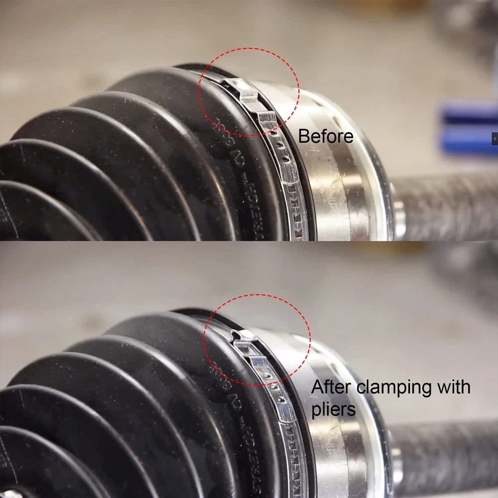 Features: ★Applications : Suitable lor most cars11 4inchThe pliers will work withina fixed angle range. And thestopper design on the top will guidethe pressing band to fix to the 2.2inch right position. ★Special DesignGripper clamping ,small ring can help yousave time and space inlimited space and get thework done quickl. Allows you to use the proper clamps to secure your CV or tie rod clamps in close quarters. ★After crimping, check whetherring with crimping pliersthe crimping is firm and whetherne compression ring is damagedor deformed. ★Offset Boot Clamp Plier give you the chance to crimp the clamping band without crawling under the vehicle or working from an impossible angle. Compared to needle nose pliers and channel locks, these pliers make it easier to compress bellows boot clamps on cars. ★The plier handle is long enough to work more easily and with less effort, perfect crimping effect. ★The material is forged from fine steel. The handle will not deform even though the lever grip is very strong. No matter any clamp ring can be compressed. Description: Condition:New Part Name: Offset Boot Clamp Pliers Part Numbers: 30600 Application:Fits For Lisle Package included: 1 x Offset Boot Clamp Pliers Note: ★Please check pictures for more details. ★Please make sure your part number is same with ours, and make sure it will fit your machine before purchasing it.