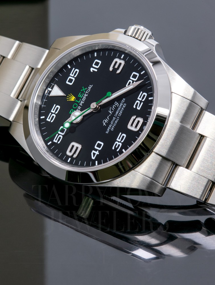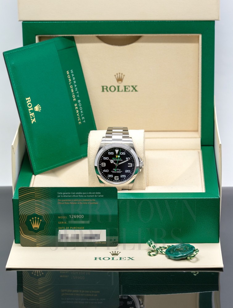 Title Air-King 126900 $9,450.00 PRODUCT DESCRIPTION New gents Rolex Air-King in stainless steel, Ref# 126900. On a stainless steel Oyster bracelet with a flip-lock deployant clasp. Smooth bezel with a sapphire crystal. The case diameter is 40 mm. Self-winding movement. Black dial with applied, framed, luminescent-filled, and painted Arabic numerals. With the box, warranty booklet only, warranty booklet holder, green hangtag, and papers dated 2023. New condition. We sell our watches on multiple platforms and do our best to take sold items down immediately. Occasionally, an item will sell on more than one platform; in that case, we sell to the first purchaser. If you would like to check on availability, feel free to reach out before placing your order. We respond to all messages Monday-Friday 10-5 EST. Shipping Policy Shipping Costs Tarrytown Jewelers does not include shipping costs on the listed prices. Shipping costs are the buyer's responsibility and vary based on weight, value, and location. The costs of returns are item-specific. Sales tax or other fees on orders shipping anywhere outside New York State depend on the destination and their applicable laws. Shipping to the Continental USA Tarrytown Jewelers ships using UPS, FedEx, and USPS. We ship express overnight on all orders. All shipments are fully insured against loss, theft, or damage during transit. All shipments require an adult signature to complete the delivery. We do not ship over the weekend (US EST) to avoid packages stalling in transit. Special arrangements can be made for Saturday deliveries for an additional cost and may not be available in all areas. Shipping to Outside the Continental USA Tarrytown Jewelers ships international packages using FedEx International unless other arrangements are necessary. All shipments are fully insured against loss, theft, or damage during transit and all require an adult signature to complete the delivery. Arrival times vary based on location and may be affected by conditions beyond the control of our shipping vendors. Duty and or other fees associated with applicable international shipments are the buyer's responsibility. Shipping to a Non-Billing Address Tarrytown Jewelers is required to ship to the billing address when a credit card is used. If the buyer requires a package shipped to an alternate address, the address must be filed with the buyer's credit card company before any shipment is made. Shipping Within New York State Tarrytown Jewelers is located in New York and required by law to collect sales tax on all deliveries within the state. P.O. Boxes Tarrytown Jewelers can deliver to P.O. Boxes when using USPS. APO/FPB Military Addresses Tarrytown Jewelers delivers to APO/FPO Military Addresses and is handled on a case-by-case basis. Shipment Tracking For insurance purposes, Tarrytown Jewelers is unable to divulge tracking numbers. Please reach out to us via eBay Messages and we will provide the most up to date status on your shipment. Return Policy Tarrytown Jewelers offers a full 14-day money-back guarantee for purchases made via eBay. The 14-day time period begins upon receipt of the item. This period will be extended within reason in certain situations, but only with prior consent from Tarrytown Jewelers. Fees to return items including but not limited to; shipping, insurance, and import duty, are the buyer's responsibility where applicable. Returned items must not be worn, and show no visible signs of wear. Special orders and New items are final sales. Our Warranty All of our pre-owned watches come with a 15-month functionality warranty. Damage caused by negligence and misuse, including and not limited to; broken crystals, scratched cases, scratched bracelets/buckles, worn straps, broken components, and movement issues deemed to be the result of an impact or abuse of any nature are not covered by the warranty. About Us Tarrytown Jewelers started in 1972 by Steve and Marlene Dubinsky as a small firm dealing in rare coins, jewelry, and precious metals. In 1978 Tarrytown Jewelers took a dramatic step forward and became one of the first companies in the United States to specialize in the acquisition and sales of fine pre-owned wristwatches. Tarrytown Jewelers enjoys a worldwide reputation as one of the leading sources of fine horological items. Since its inception, Tarrytown Jewelers has been dedicated to serving its clients without compromise, in areas ranging from restoration to the acquisition of the most sought-after wristwatches. Customers trust Tarrytown Jewelers to the discreet purchase and brokering of fine watches, diamonds, and jewelry. Powered by