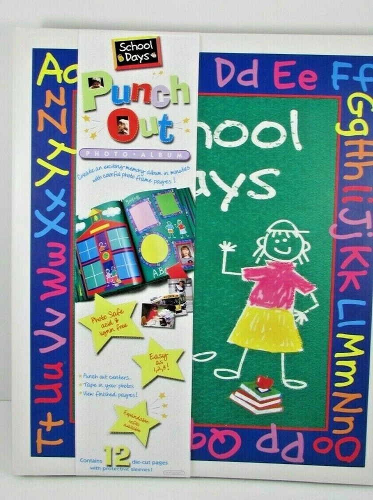 DESCRIPTION: You are purchasing a New School Days Punch Out Photo Albums By Amscan. 8.5 x 11 pages full color punch outs. Create an exciting memory album in minutes with colorful photo frame pages! Photo safe acid & Lignin Free. Easy as 1,2,3! Punch out centers. Tape in your photos. View finished pages! Contains 12 die-cut pages with protective sleeves. This comes from a smoke free home! I will combine shipping on multiple purchases! (SB Shelf) SHIPPING INFO: Buyer to pay shipping costs. Items sold as is! Item to be sent via USPS. We do not ship internationally. If you have a U.S.A. based mailing address then we will send it to that address rather than the international one. We will cancel orders if out of country. BIDDING and PAYMENT INFO: Winning bidder must make payment within 3 days of close of auction or item will be re-listed. ***BEFORE BIDDING*** All items are sold as is, where is. I will only accepts returns if you find that I have misrepresented myself . Most of my items are vintage and will naturally show wear from age and use. This is an auction, and the sale of this item will be considered final. I have endeavored to photograph and accurately describe every item as to its condition and authenticity to the best of my ability. I am happy to answer any questions during the auction! PAYMENT: Payment must be received within 3 days of the closing date of the auction. Email me if you have any questions about payment. Your order will be shipped to the address registered with Ebay. If you want the item shipped to a different address, you must email me and receive a confirmation of your request. Otherwise, the item will be shipped to the registered address.