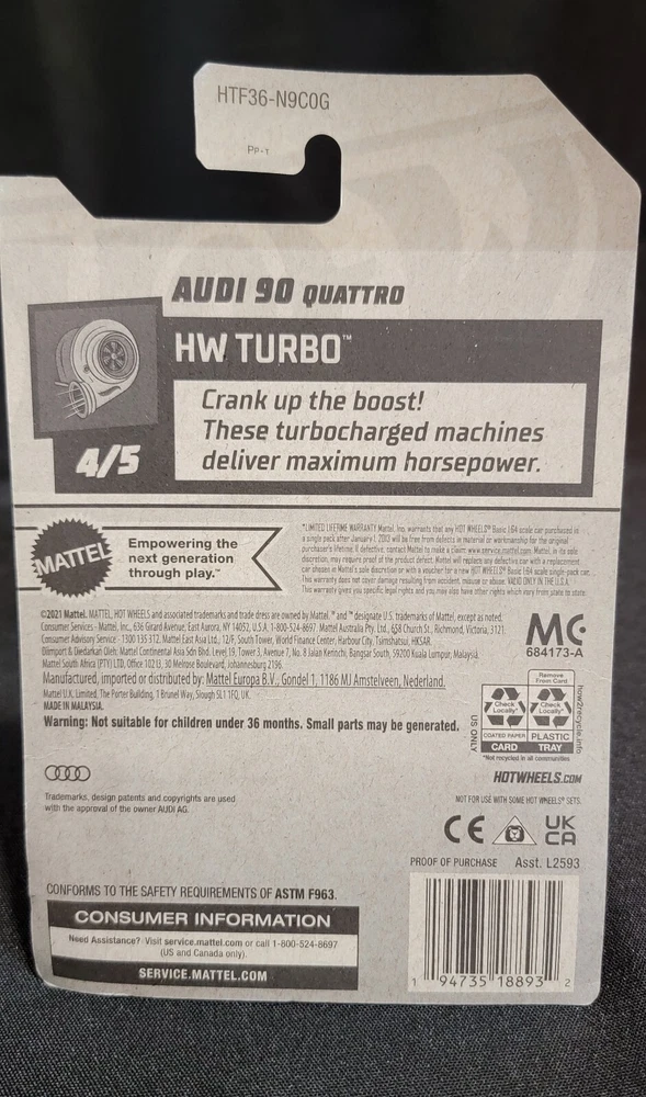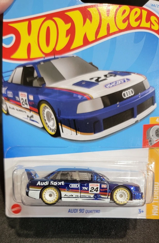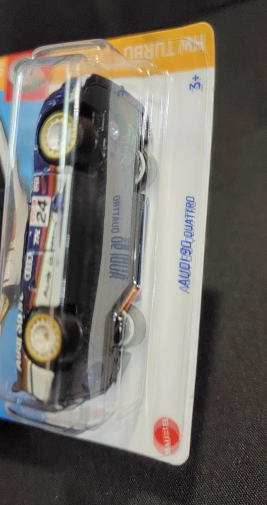 Get your hands on this limited edition Hot Wheels Audi 90 Quattro 2024 Super Treasure Hunt Circle Flame Pack! This diecast car is perfect for collectors and car enthusiasts alike, with its stunning blue color and intricate details. The car is part of the HW Turbo series and is a must-have for any Hot Wheels fan. This unopened box is recommended for ages 3 and up, making it a great gift for boys and girls. The Audi 90 model is made from high-quality materials and is manufactured in Malaysia. Don't miss out on this hard-to-find car and add it to your collection today! HTF 144/250 HW Turbo series Gold circle flame emblem on package behind car See pictures for details