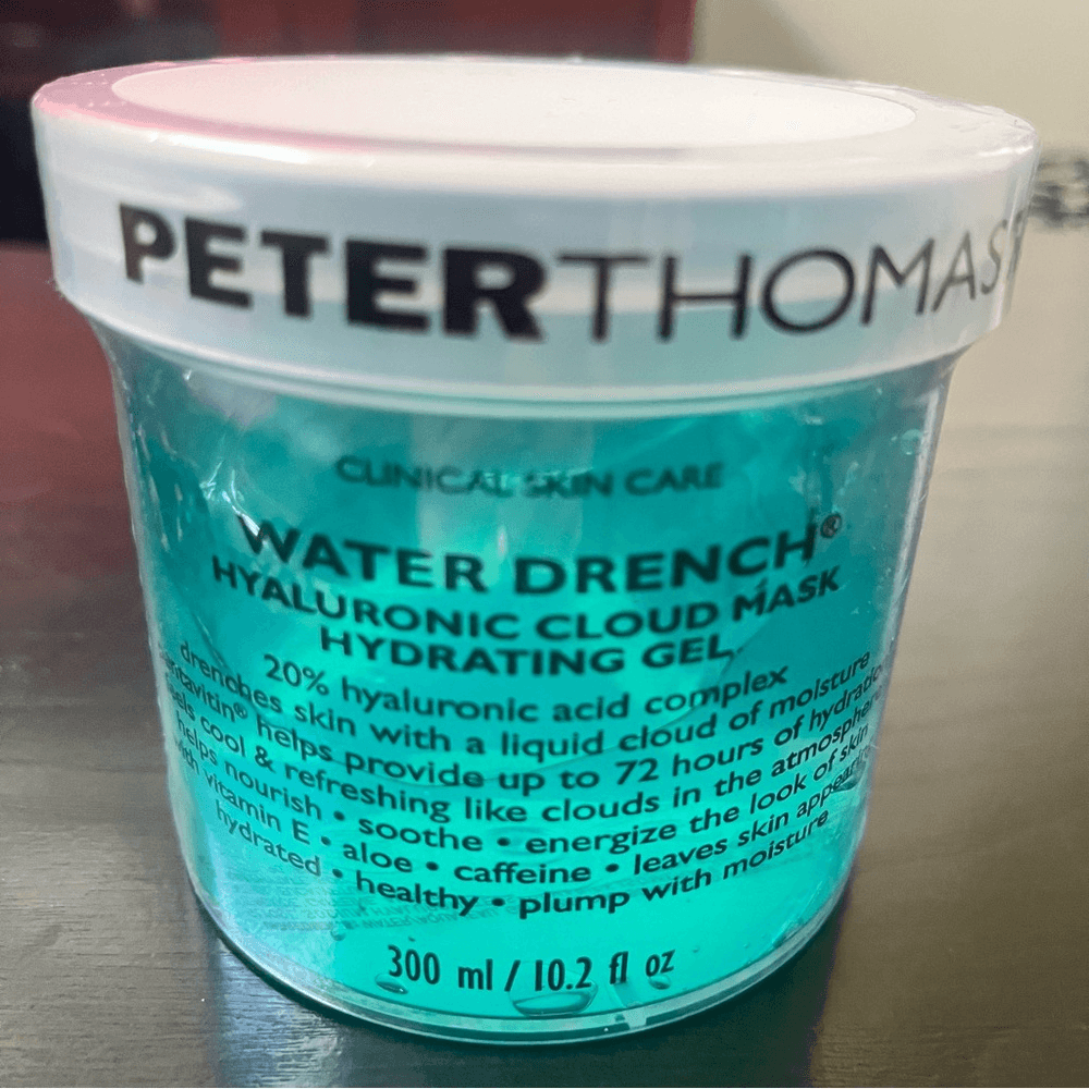 New Sealed Peter Thomas Roth Mega-Size Water Drench Hyaluronic Cloud Mask 10.2 fl.oz. Drench your skin in a plump, liquid cloud of moisture that feels cool and refreshing. This mega-size hydrating gel mask contains hyaluronic acid, along with moisturizers that help skin feel moisturized and help to temporarily diminish the appearance of fine lines and wrinkles. Plus, it's packed with game-changing ingredients like Vitamin E, Aloe, caffeine, and pentavitin -- all to revolutionize your skin-care