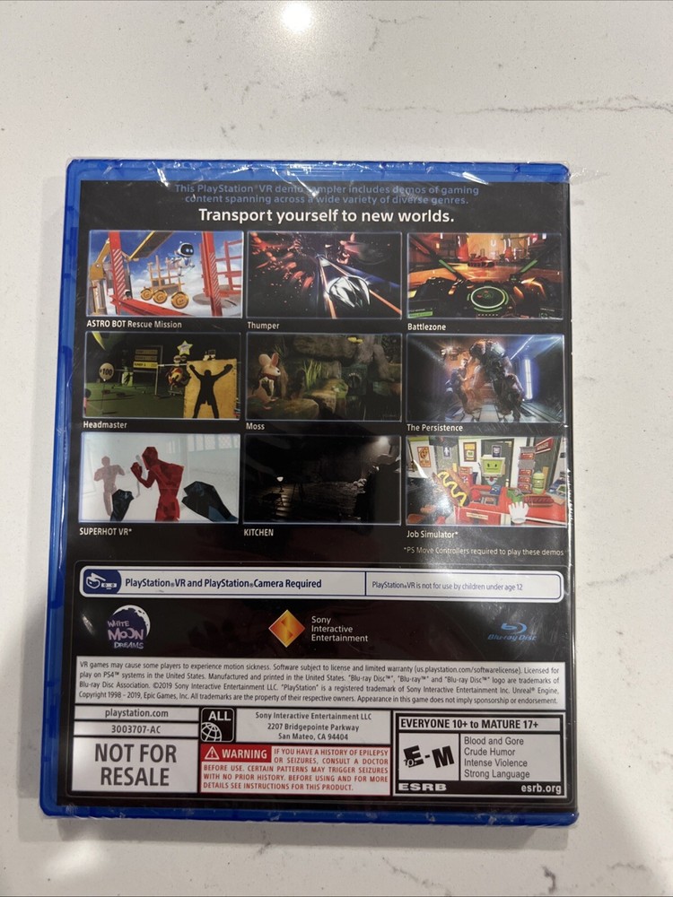 Immerse yourself in a variety of virtual reality experiences with the PlayStation VR Demo Disc for PS4. This disc includes a collection of demo games that showcase the capabilities of the PlayStation VR headset. From realistic simulations to imaginative adventures, this disc offers a taste of what VR has to offer. The Demo Disc is compatible with the Sony PlayStation 4 and includes games suitable for everyone with an E-Everyone rating. The disc is brand new and factory sealed, ensuring that you receive a pristine copy. Get ready to dive into a new world of gaming with the PlayStation VR Demo Disc.