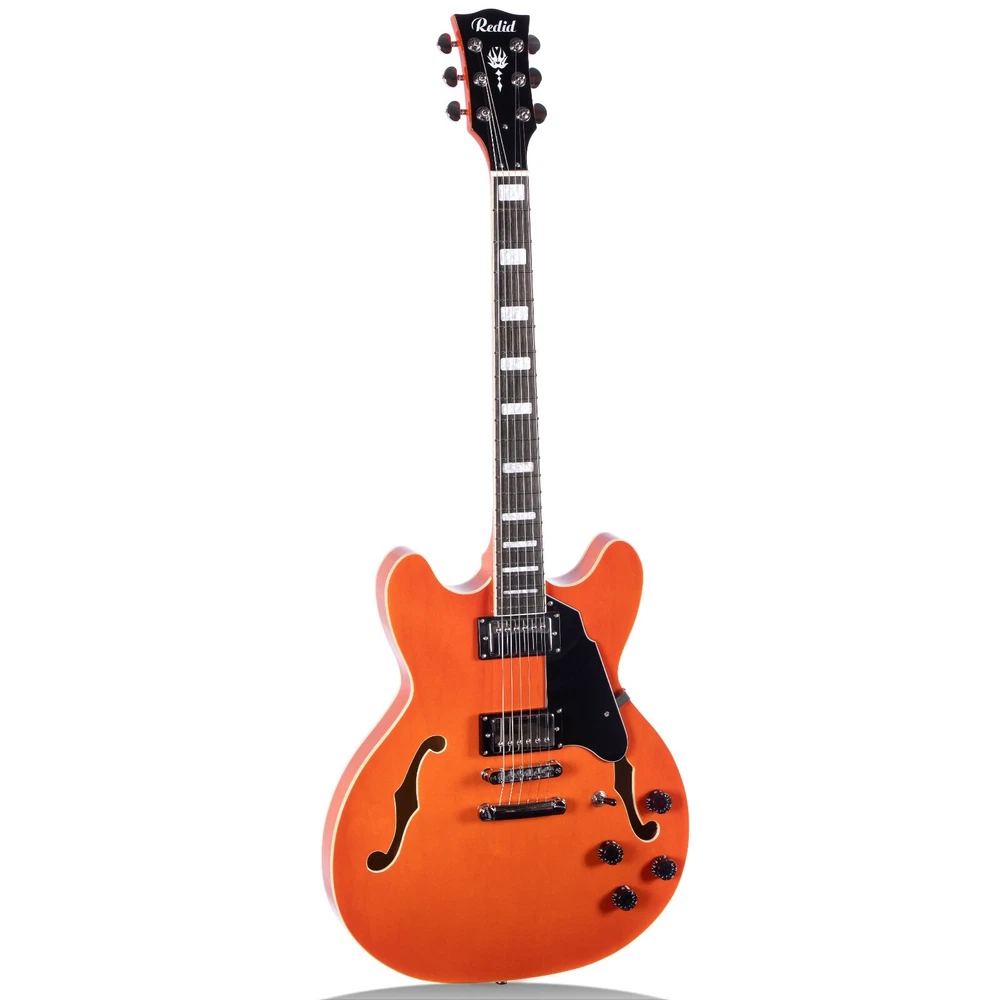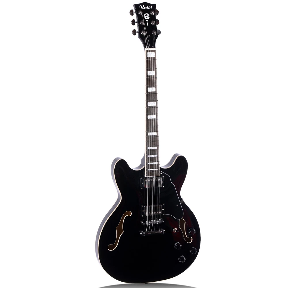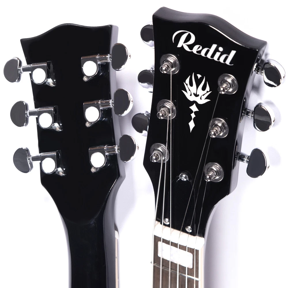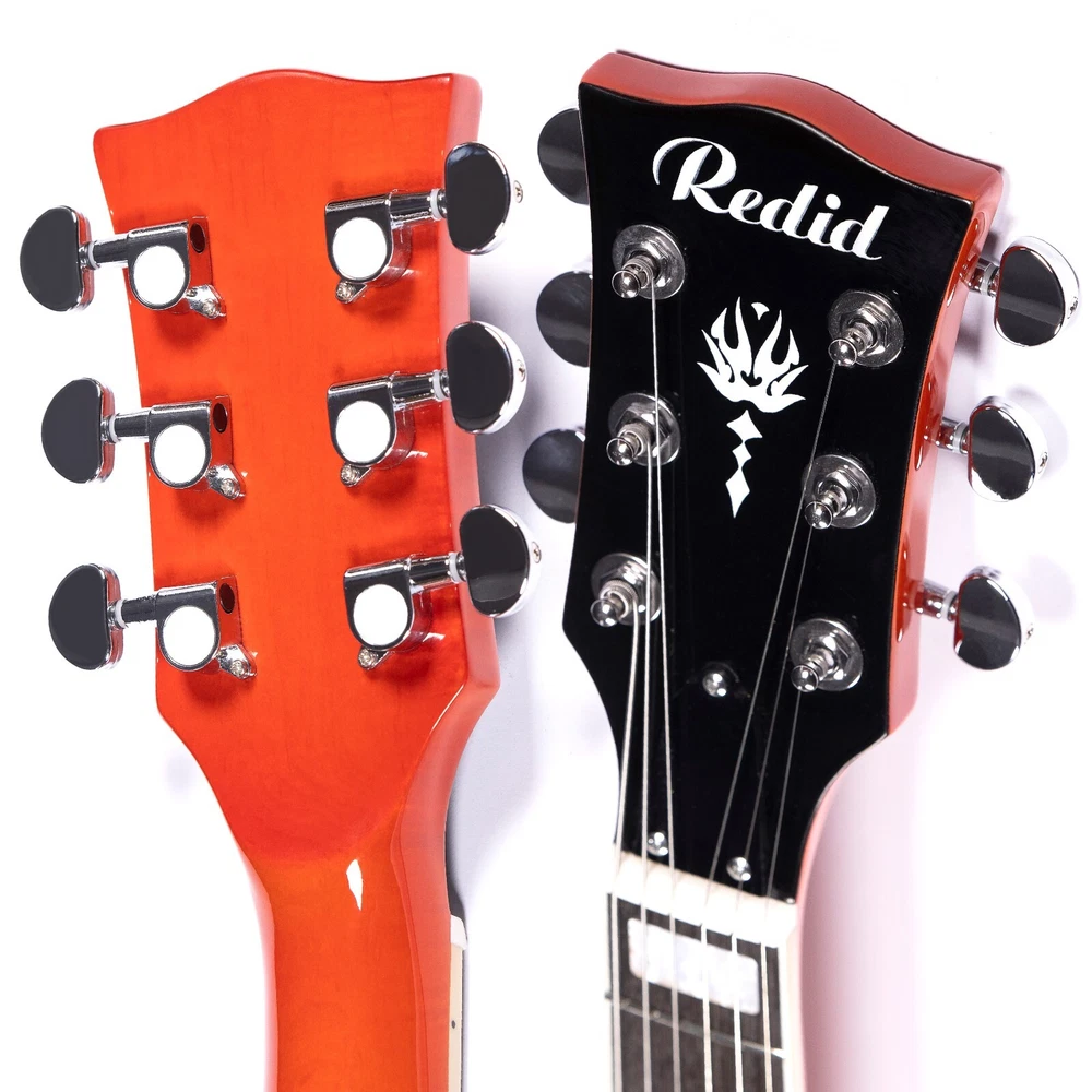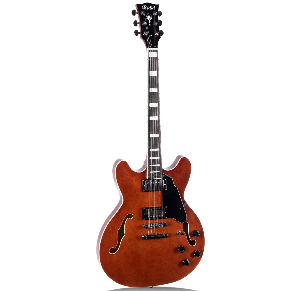 Semi-Hollow Body The RD-100 semi-hollow body design make it a stylish and versatile choice for any player. With its classic aesthetic and warm, dynamic sound, the RD-100 is perfect for a wide range of musical styles, both on stage and in the studio. Set-in The set-in neck design of the RD-100 provides a seamless transition between the neck and body, resulting in a more resonant and warm tone. Pickups The Tune-O-Matic bridge and humbucking pickups on the RD-100 give it stable intonation, easy string changes, and a rich, full sound that's perfect for rock, blues, and jazz. Whether you're performing on stage or recording in the studio, the RD-100 is a reliable and versatile choice. Stainless Steel Frets Hand-Polished Stainless Steel Frets: Our guitar features meticulously hand-polished stainless steel frets with smooth, rounded ends that ensure your fingers glide effortlessly across the fretboard without the risk of scratches or discomfort.