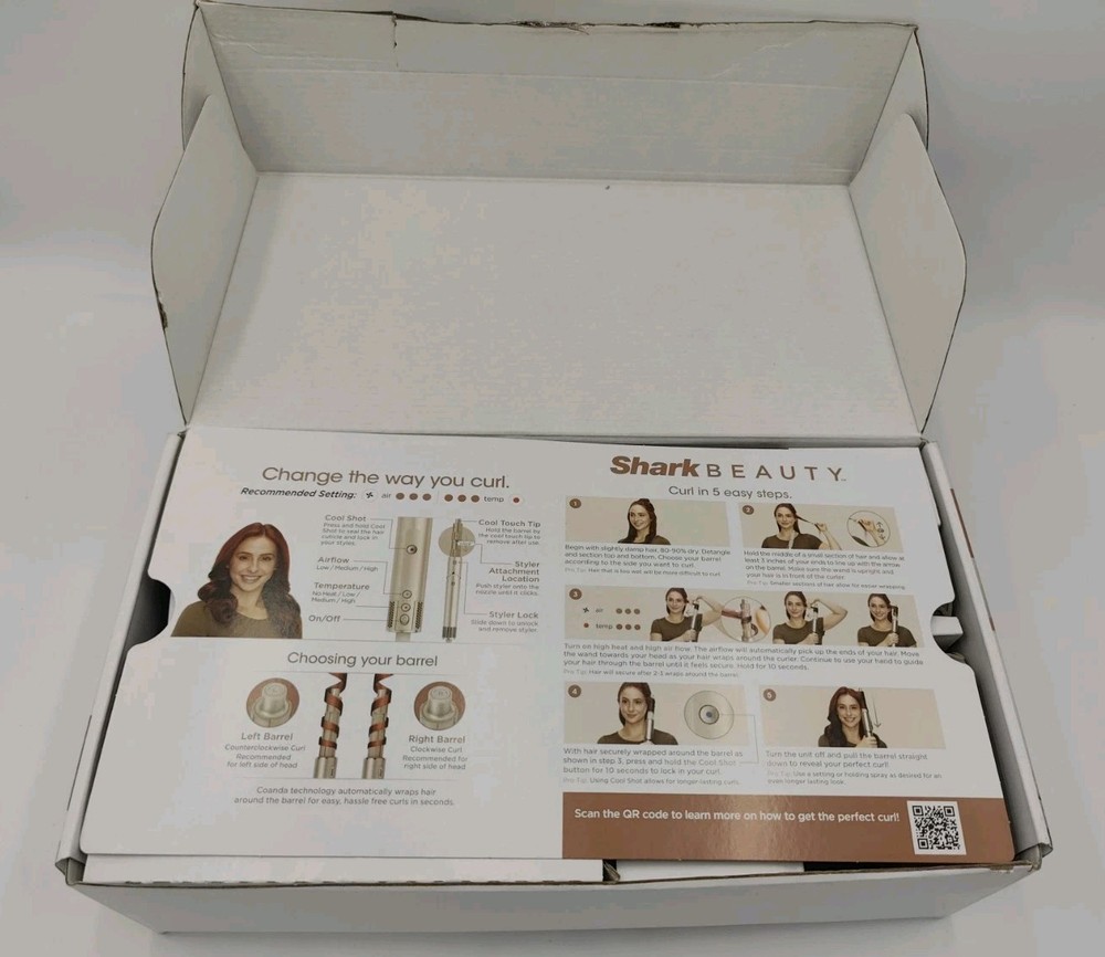 Number of Temperature Settings:4Barrel Size:1.25" - 2"Type:Standard Hair DryerSize:Travel SizeColor:BeigeUPC:Does not applyBrand:Sharkgtin13:Does not applyNumber of Speeds:3Power:1300 WCountry of Origin:ChinaItem Condition:UnboxFeatures:Adjustable Heat Settings, Cool Tip, Diffuser, Dryer Attachment, Ionic TechnologyMPN:HD430Power Source:ElectricModel:HD430
