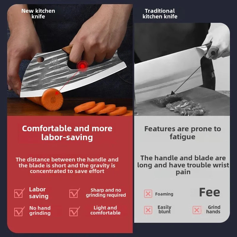 New Sharp Kitchen Knife Full Blade Stainless Steel Multi-functional Chef's Knife Features Extremely sharp: Each blade is made of forged high carbon steel. The blades are then manually polished and finally satin treated - providing extremely sharp and efficient edges that can be maintained for a long time even in daily heavy use. Comfort and safety: The handle is made of colored wood, which is easy to operate, comfortable, and non slip. The balance between the blade and handle of each knife is very even. If you frequently use the knife to handle large amounts of ingredients, the pressure on the arm of the balance knife is much smaller. Durable: Made of tableware grade steel with a hardness of 58 Rockwell, the blades are neither rusty, corrosive, nor discolored. You still need to hand wash the knives and keep them dry to maintain their appearance. Precision forging creates durable cutting tools. Item specifics Material: Stainless Steel Handle: Solid wood grip Handle Length: 11cm Blade length: 21cm Blade Angle: >60°