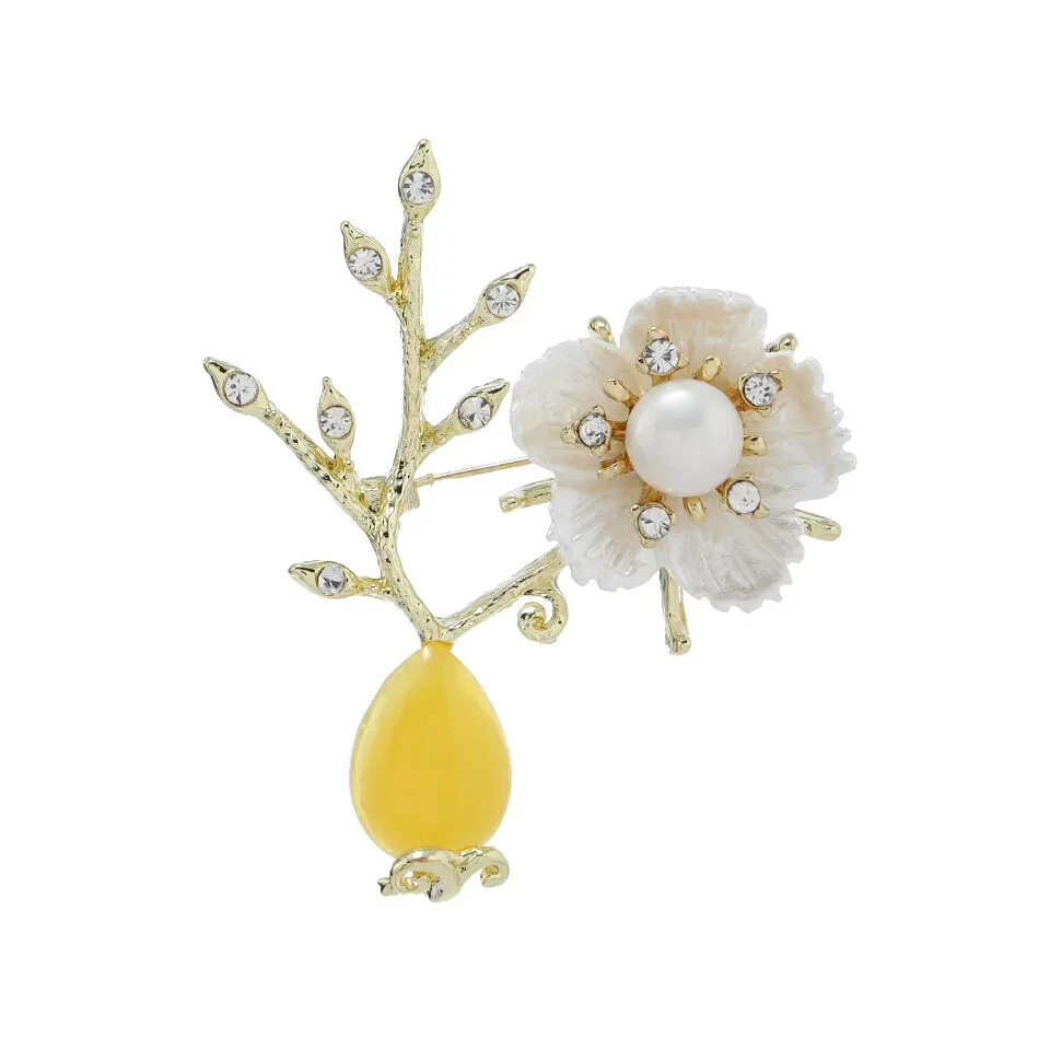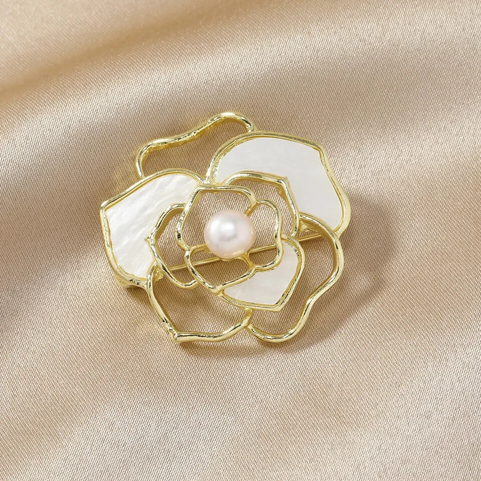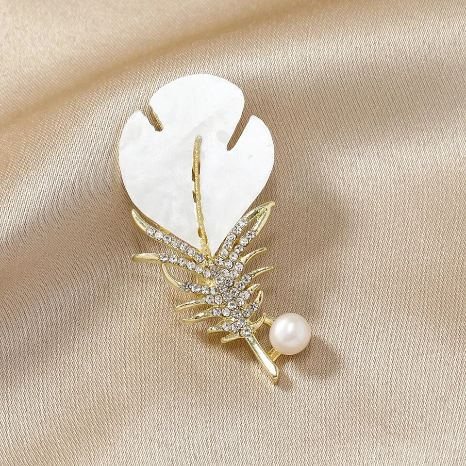 New Shell Pearl Brooch for Men and Women Feathers Flowers Simple Accessories
