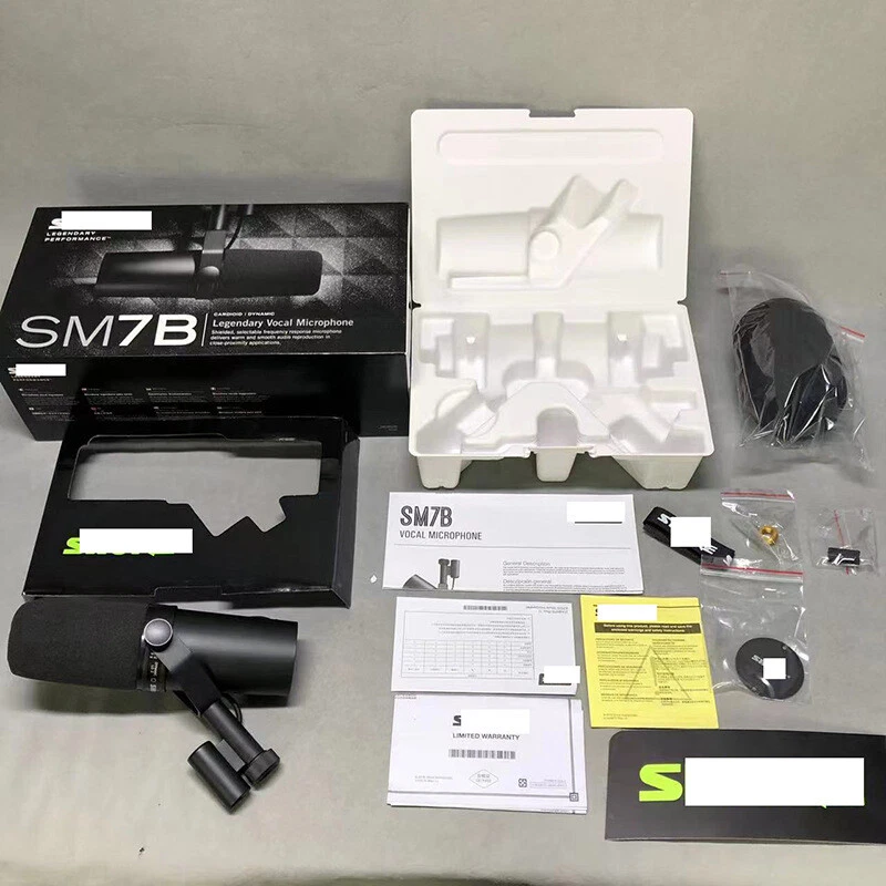 New Shure SM7B Dynamic Vocal / Broadcast Microphone Cardioid Free Shipping Limite quantity, clearance sale! About this item ONE MICROPHONE FOR EVERYTHING - Studio Recording, Home Recording, Podcasting and Streaming. The SM7B Is Trusted By The Worlds Leading Vocalists, Podcasters and Streamers. STUDIO VOCAL RECORDING - The SM7B’s Dynamic Cartridge With Smooth, Flat, Wide-range Frequency Response Produces Exceptionally Clean and Natural Reproduction Of Both Music and Speech. PODCAST and BROADCAST - Found In The Top Podcasting Studios Around The World, The SM7B Air Suspension Shock Isolation and Pop Filter Eliminate Both Mechanical Noise And Breathiness. So Words Get Through And The Rest Stays Out Of The Mix. STREAMING CONTENT - Professional Live Streaming Starts With A Microphone Capable Of Capturing Exceptionally Clean And Natural Reproduction Of Both Music And Speech. The SM7B Has Been A Pioneer In Such Abilities For Decades. PROFESSIONAL XLR CONNECTION - The XLR Connection Along With An Audio Interface Allows You More Control Over The Sound — Thus A Better Overall Sound Quality. At least 60dB of gain is recommended to get that iconic warm and balanced tone most commonly associated with the SM7B. CLASSIC CARDIOID PATTERN WITH UNIFORM CAPTURE - The SM7B Cardioid Pattern Is Designed To Reject Off-axis Audio, So You Can Sing Or Speak At A Comfortable Angle And It Captures The Sound, Just As You Want It, With Minimum Coloration. SHIELD YOUR SOUND - We Added Advanced Electromagnetic Shielding To Defeat Hum From Computer Monitors And Other Studio Equipment. CLOSE-MIKING STUDIO APPLICATIONS - The SM7B Shines When Used For Close-miking Instruments and ASMR Audio Where Warm And Smooth Full-frequencies Are A Must. QUALITY IN THE DETAILS - Rugged Construction For Securing The Microphone Cartridge. Detachable Close-talk Windscreen And Switch Cover Plate Included. Bass Rolloff And Mid-range Emphasis (Presence Boost) Control With Graphic Display Of Response Setting. WHAT’S IN THE BOX - SM7B Vocal Dynamic Microphone With One A7WS Detachable Windscreen And One RPM602 Switch Cover Plate. Description: Whether it’s broadcasting, podcasting, or recording, voices need to be handled with care. When purified and polished, every detail has more impact. That’s why the SM7B was built - to capture smooth, warm vocals that connect the speaker to the listener. It\\'s s imply the first choice for voice. Features: Flat, wide-range frequency response for exceptionally clean and natural reproduction of both music and speech Bass roll-off and mid-range emphasis (presence boost) controls with graphic display of response setting Improved rejection of electromagnetic hum, optimized for shielding against broadband interference emitted by computer monitors Internal "air suspension" shock isolation virtually eliminates mechanical noise transmission A highly effective pop filter eliminates the need for any add-on protection against explosive breath sounds, even for close-up vocals or narration Now shipping with the A7WS detachable windscreen, designed to reduce plosive sounds and gives a warmer tone for close-talk vocals Yoke mounting with a captive stand nut for easy mounting and dismounting provides precise control of the microphone position Classic cardioid polar pattern, uniform with frequency and symmetrical about axis, to provide maximum rejection and minimum coloration of off-axis sound Rugged construction and excellent cartridge protection for outstanding reliability What is the SM7B best suited for? The SM7B is a smooth and warm-sounding microphone that is ideal for close-talk applications such as radio presenting and voiceovers for TV. It has also been widely used for vocals on numerous albums. Why would I want a mic that shields against electromagnetic hum? Electromagnetic hum is emitted by computer monitors which can cause interference to your sound if the mic is in close proximity to a TV screen or computer monitor and is not shielded. Also Included in Package: 1 A7WS Detachable Windscreen 1 RPM602 Switch Cover Plate On Nov 19, 2024 at 20:01:14 PST, seller added the following information: On Dec 6, 2024 at 23:39:58 PST, seller added the following information: