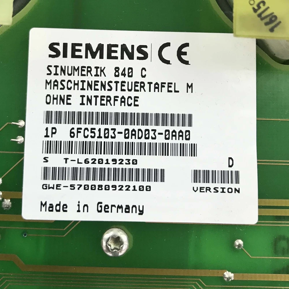 Type:SINUMERIK 840C/840CE Machine Control PanelMarke:Siemensgtin13:Does not applyMPN:6FC5103-0AD03-0AA0UPC:Does not applyHerstellernummer:6FC5103-0AD03-0AA0 (version:D)Model:6FC5103-0AD03-0AA0Brand:Siemens