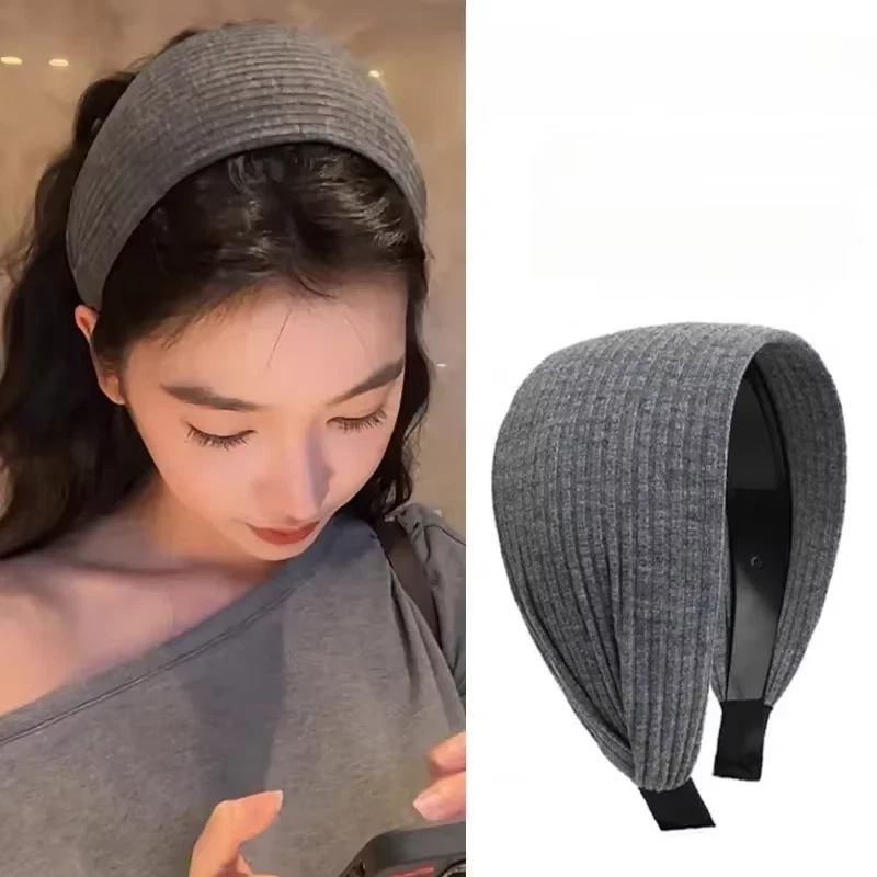 New Soft Wide Knitting Cotton Hairbands for Women Girls Korean Neutral Solid Tur