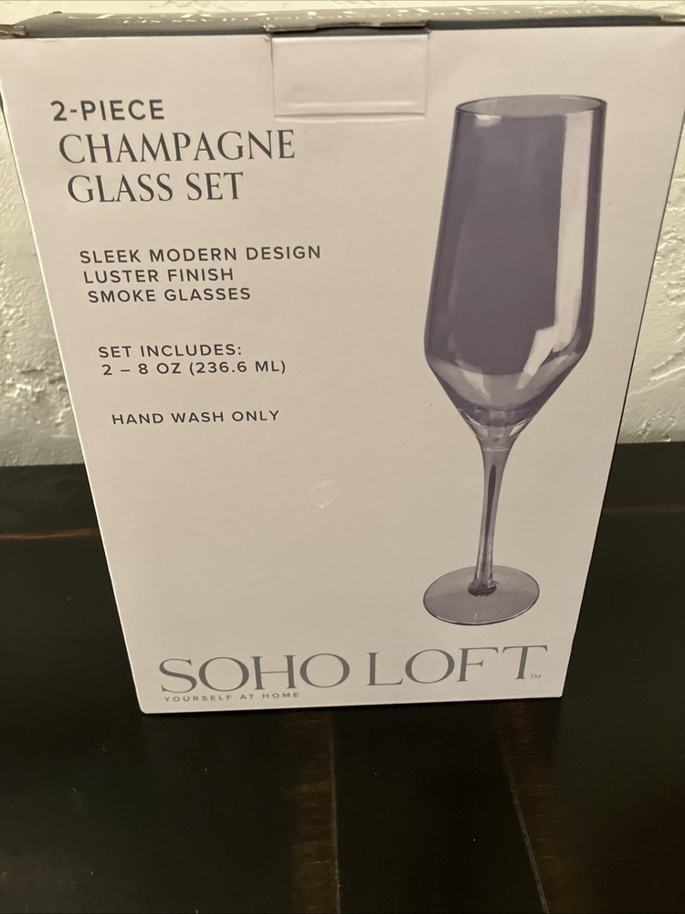 Elevate your toasting experience with the Soho Loft Smoke Luster Champagne Glasses. This set of two glasses is crafted from premium quality glass, ensuring durability and a sublime drinking experience. The sophisticated smoke color adds an air of elegance to your celebratory moments, making it an ideal choice for any occasion. The glasses come complete with a presentation box, making them a perfect gift for the champagne enthusiast in your life. Each glass has a 8 oz. capacity and features a solid color pattern with a round shape, embodying a contemporary design that complements any table setting. Whether it's a holiday gathering or a intimate dinner, these glasses will beautifully serve your favorite bubbly.